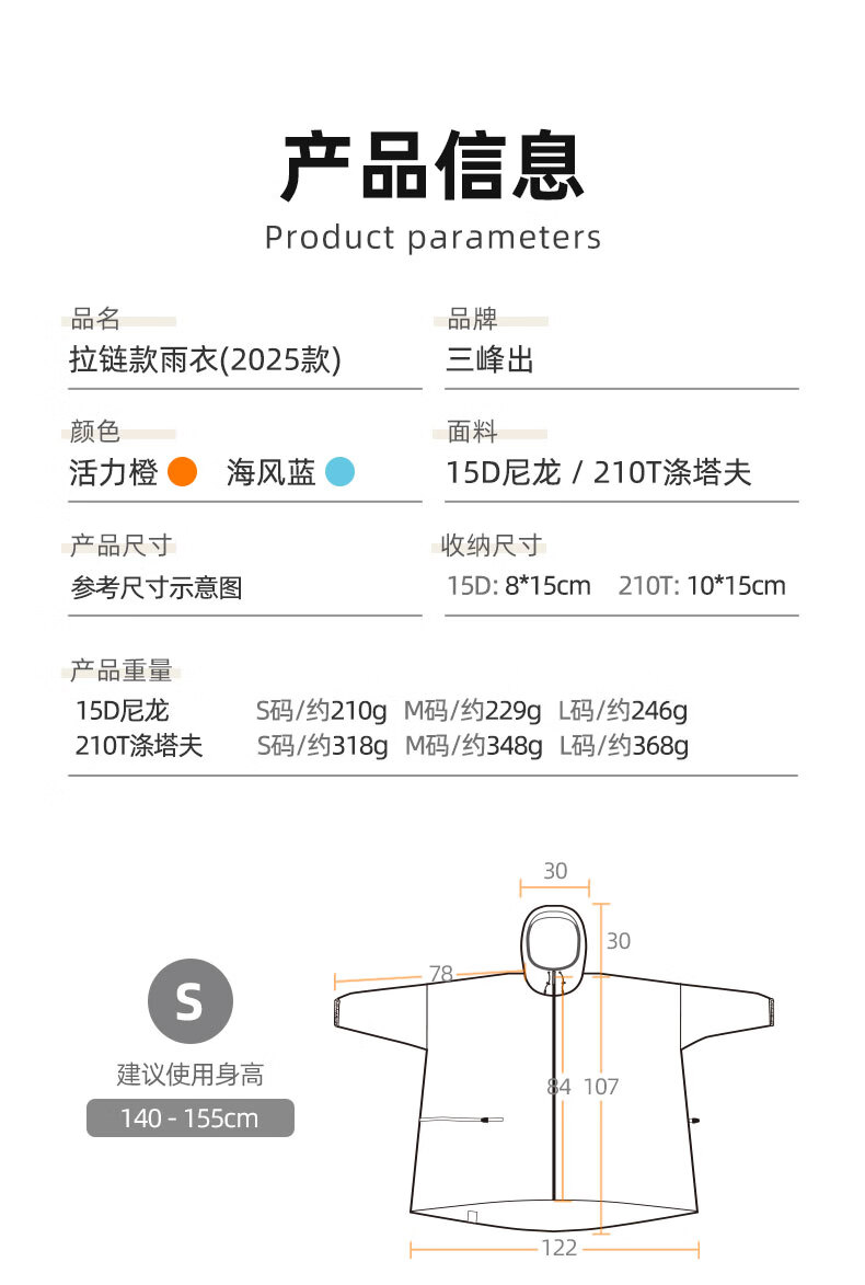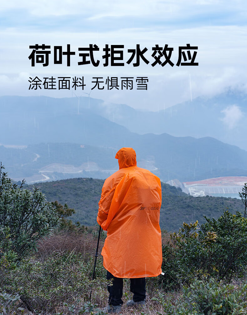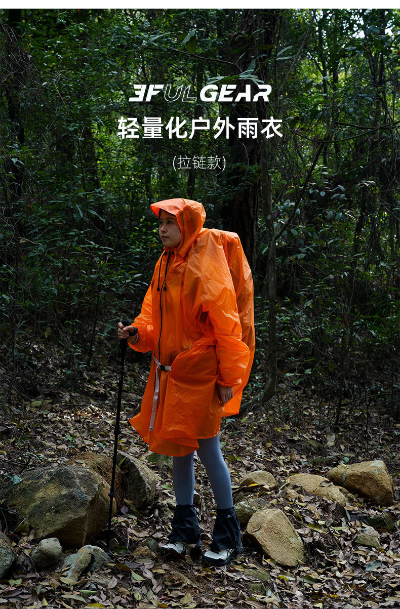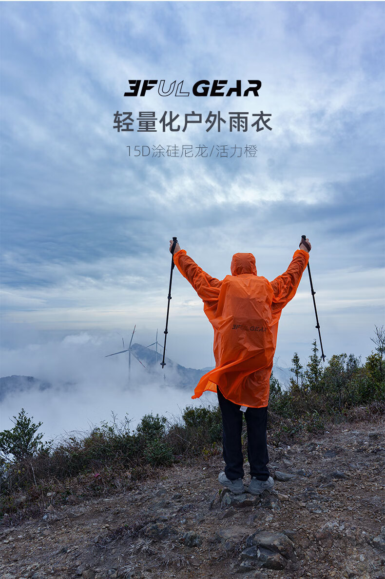 三峰出三峰雨衣户外登山徒步男女通用超轻爬山钓鱼超轻雨披多功能防雨15 2025款涤塔夫衣袖款活力橙M