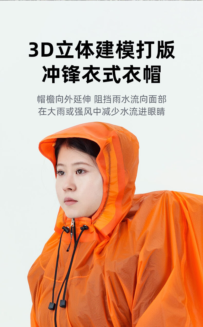 三峰出三峰登山徒步户外雨衣防水透气男女通用全身防雨雨披钓鱼超轻雨衣 活力橙升级带袖款15D涂硅面料 均码