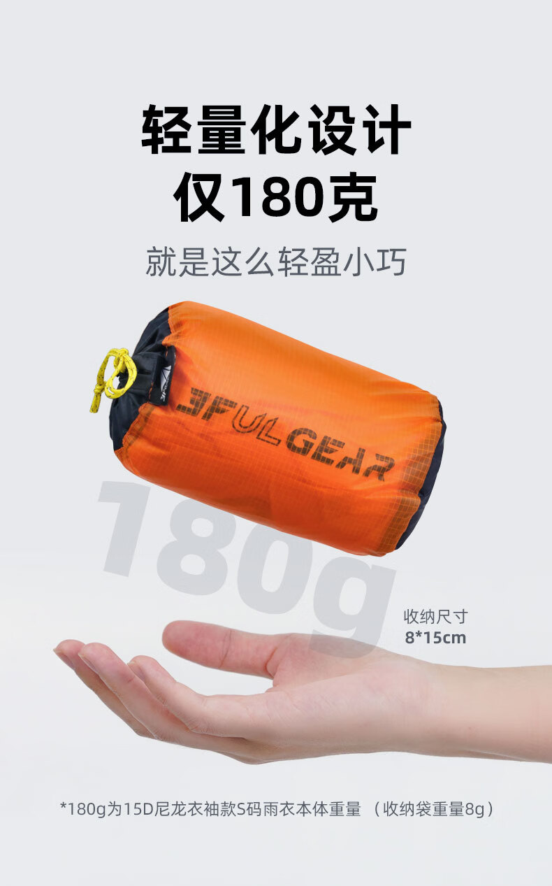 嗯,这款雨衣颜色很漂亮,然后在户外徒步拍照的话也很出片,而且也很有辨识度。如果发生意外走丢了,或者在雨雾中黑暗中能够很容易的被别人发现,而且拍照也很出片,检查之后携带很方便,重量也很轻密封痕。然后也很薄,但是防水性能很棒,非常推荐购买去户外的话,你会发现很多人都用的是这款雨衣