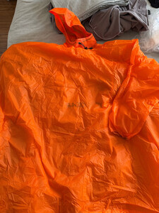 户外雨衣属于徒步过程当中必不可少的一个装备。 雨衣可以代替冲锋衣80%的功能。 颜色呢比较鲜艳嗯,还带一个收纳袋折叠起来的话呢不占地方。 另外这款雨衣的话呢,还可以把背包盖住,防止背包被淋湿。挺不错的一件必须的装备。
