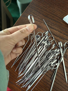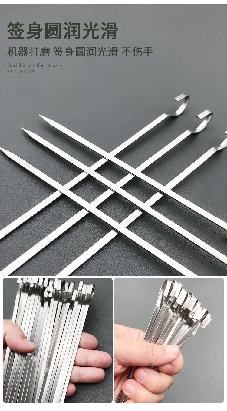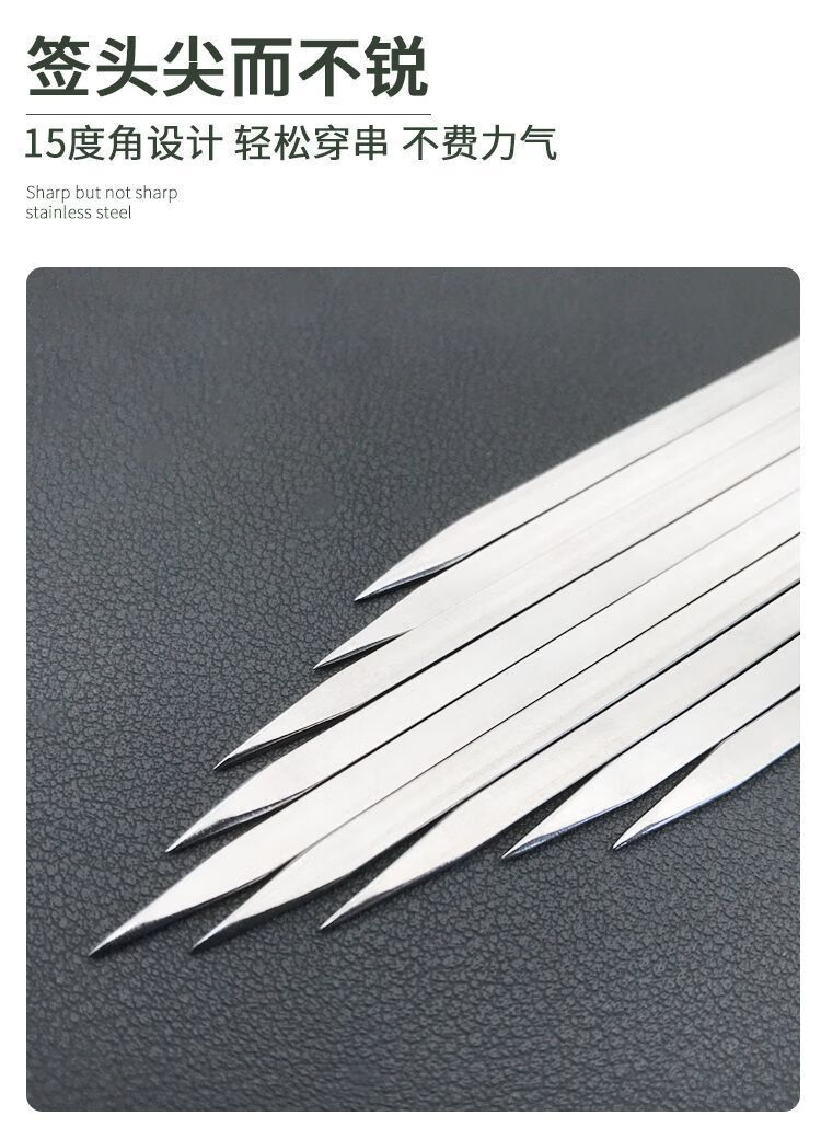 送货及时,包装完好。一把50根,多买更实惠。选的304钢。很结实。尖头位置很锋利。适合烤箱小串烧烤用。厚度也不错。