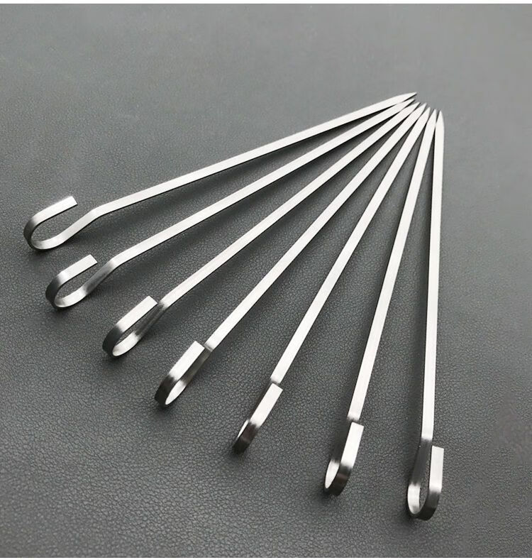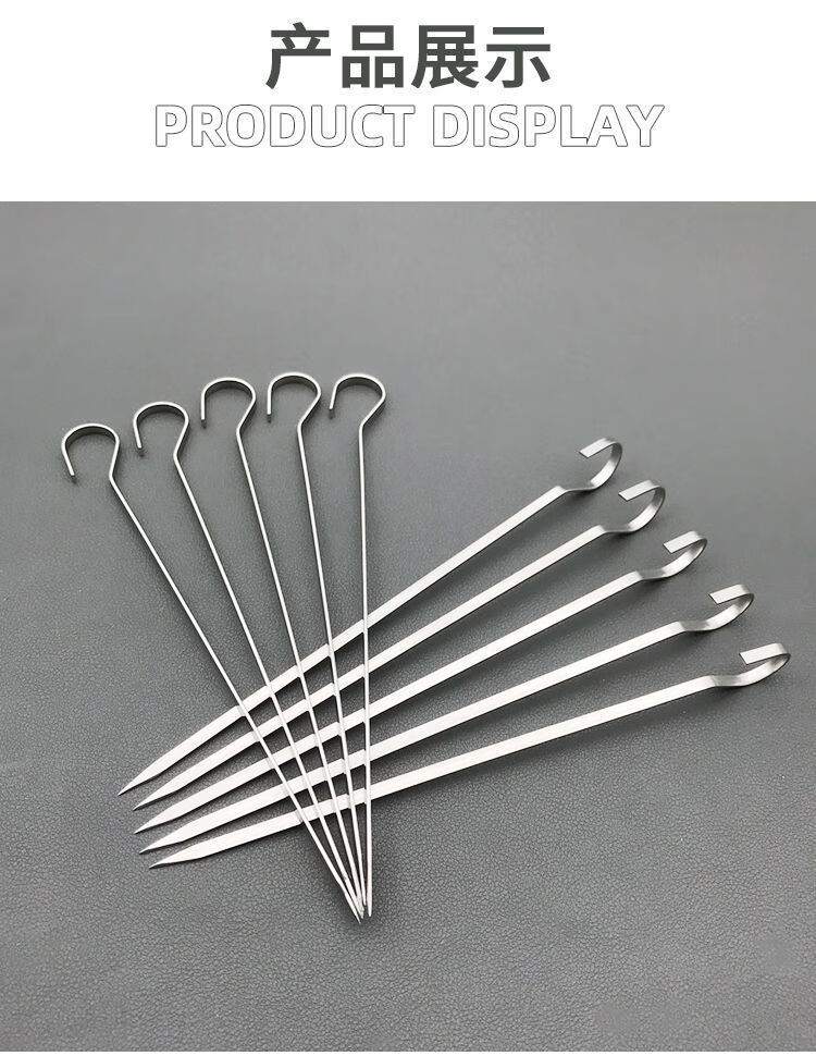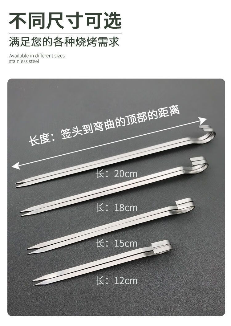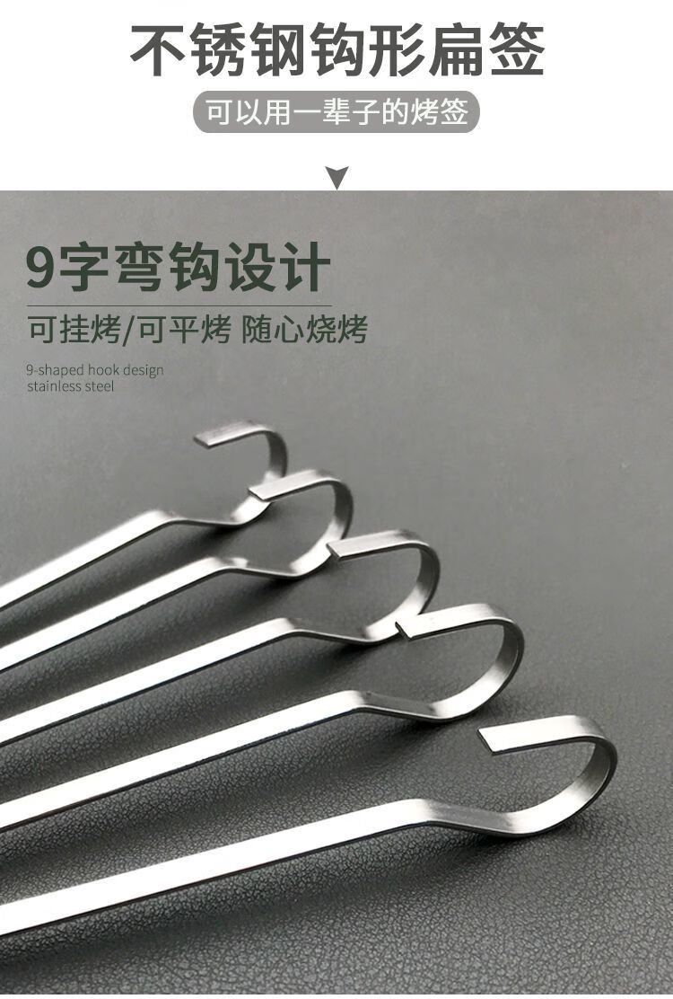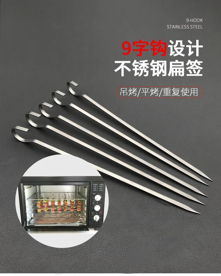 维诺亚烤箱羊肉串挂钩烧烤签子304不锈钢家用吊炉针烤肉扁铁签字叉钎子 18cm:201扁签50只