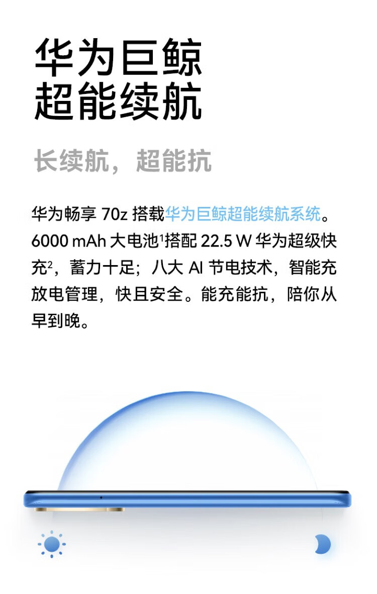 华为新品上架 6000mAh长续航 流畅安全手机 游戏拍照手机 畅享新品华为 70z 现货速发 分期 幻夜黑 256GB