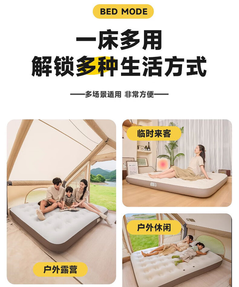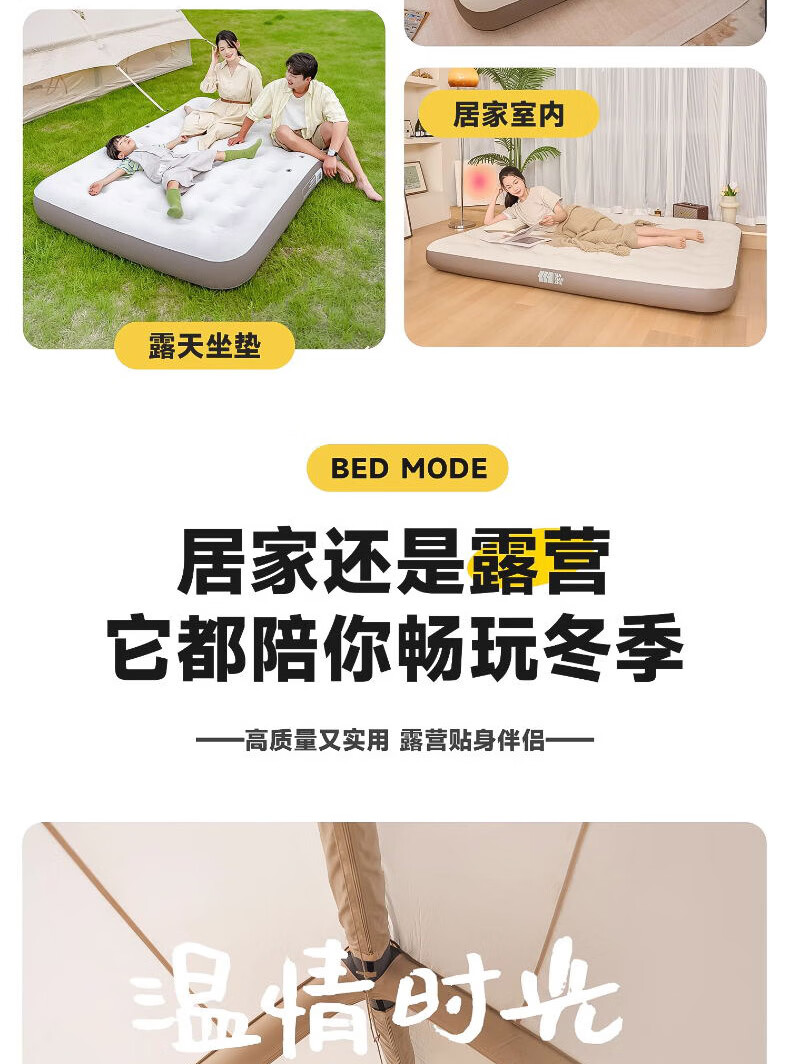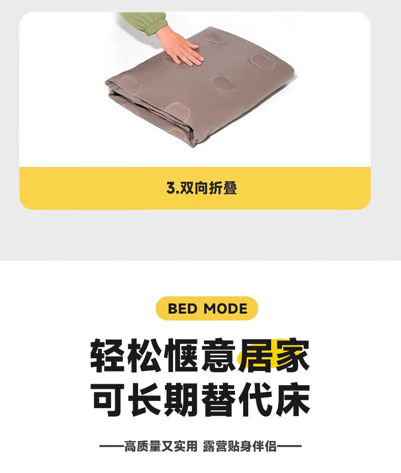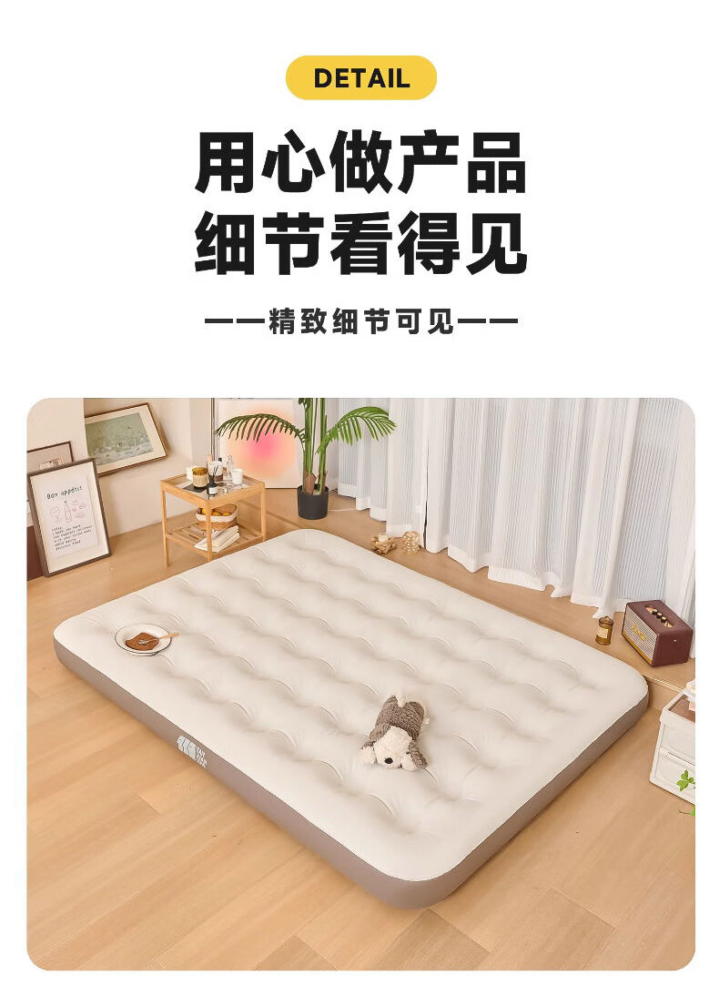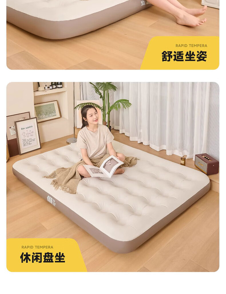 这款充气床垫太实用了!加厚材质搭配蜂窝结构,支撑力很足,躺上去软硬适中,睡一晚腰也不酸,比普通床垫舒服多了。表面是亲肤绒面,冬天不冰皮肤,底部还有防滑颗粒,铺在地板上不会滑动。不用时放气折叠,只有枕头大小,塞进收纳袋不占空间。家里来客或露营用都合适,防水耐脏还好清洁,性价比超高,真心推荐!