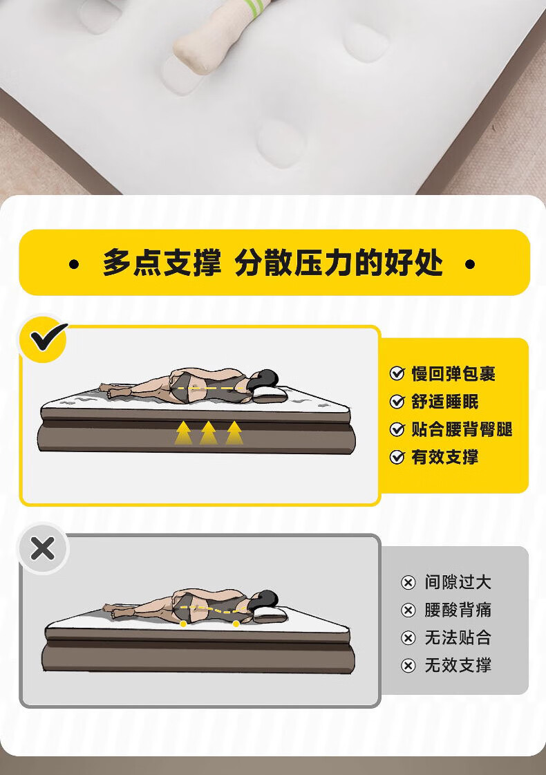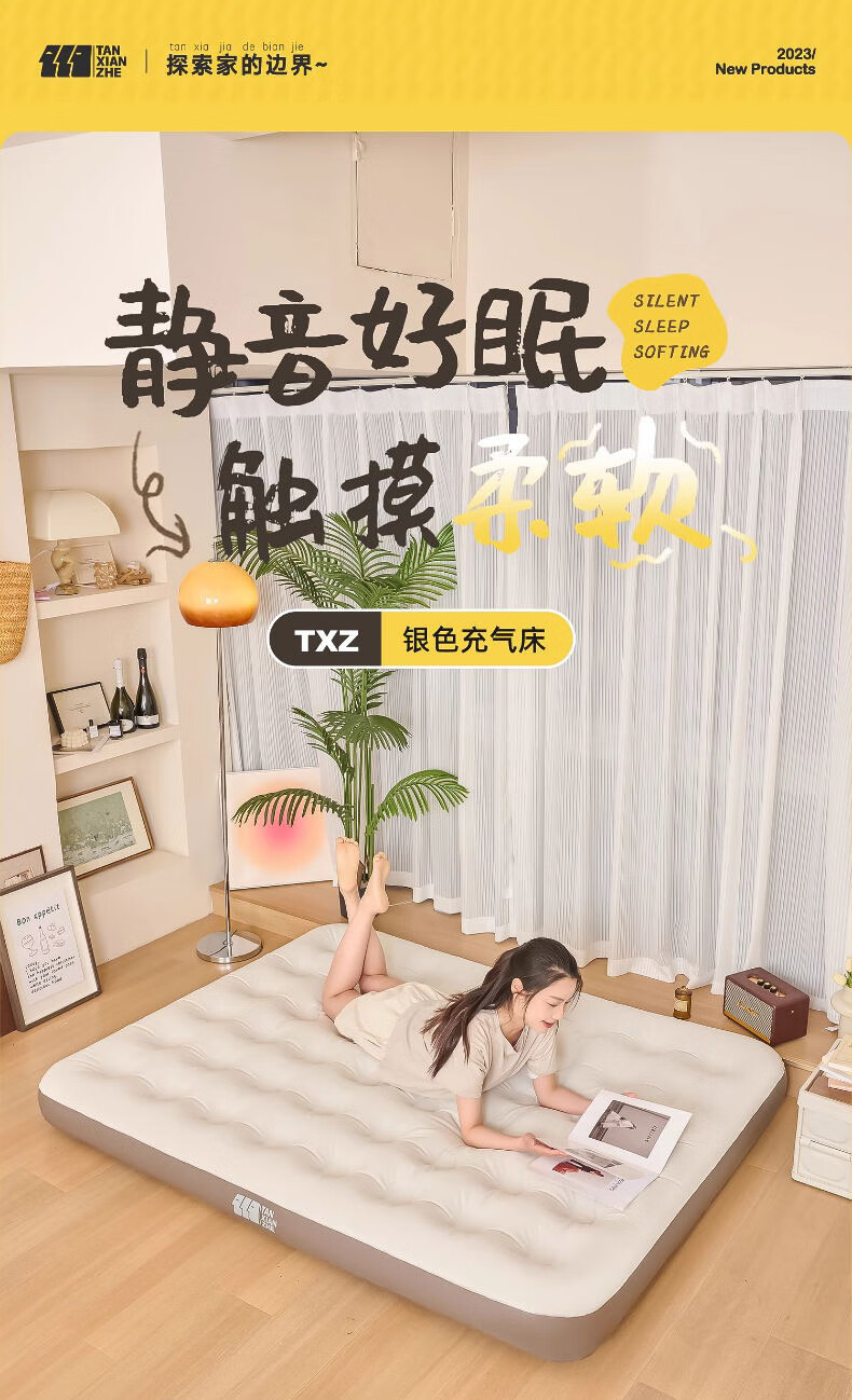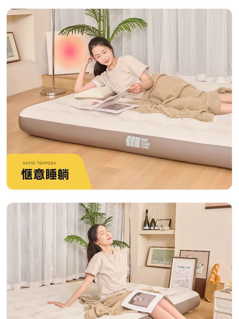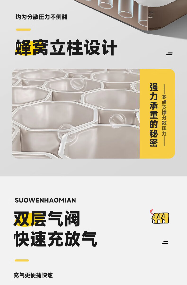 这款充气床垫太实用了!加厚材质搭配蜂窝结构,支撑力很足,躺上去软硬适中,睡一晚腰也不酸,比普通床垫舒服多了。表面是亲肤绒面,冬天不冰皮肤,底部还有防滑颗粒,铺在地板上不会滑动。不用时放气折叠,只有枕头大小,塞进收纳袋不占空间。家里来客或露营用都合适,防水耐脏还好清洁,性价比超高,真心推荐!