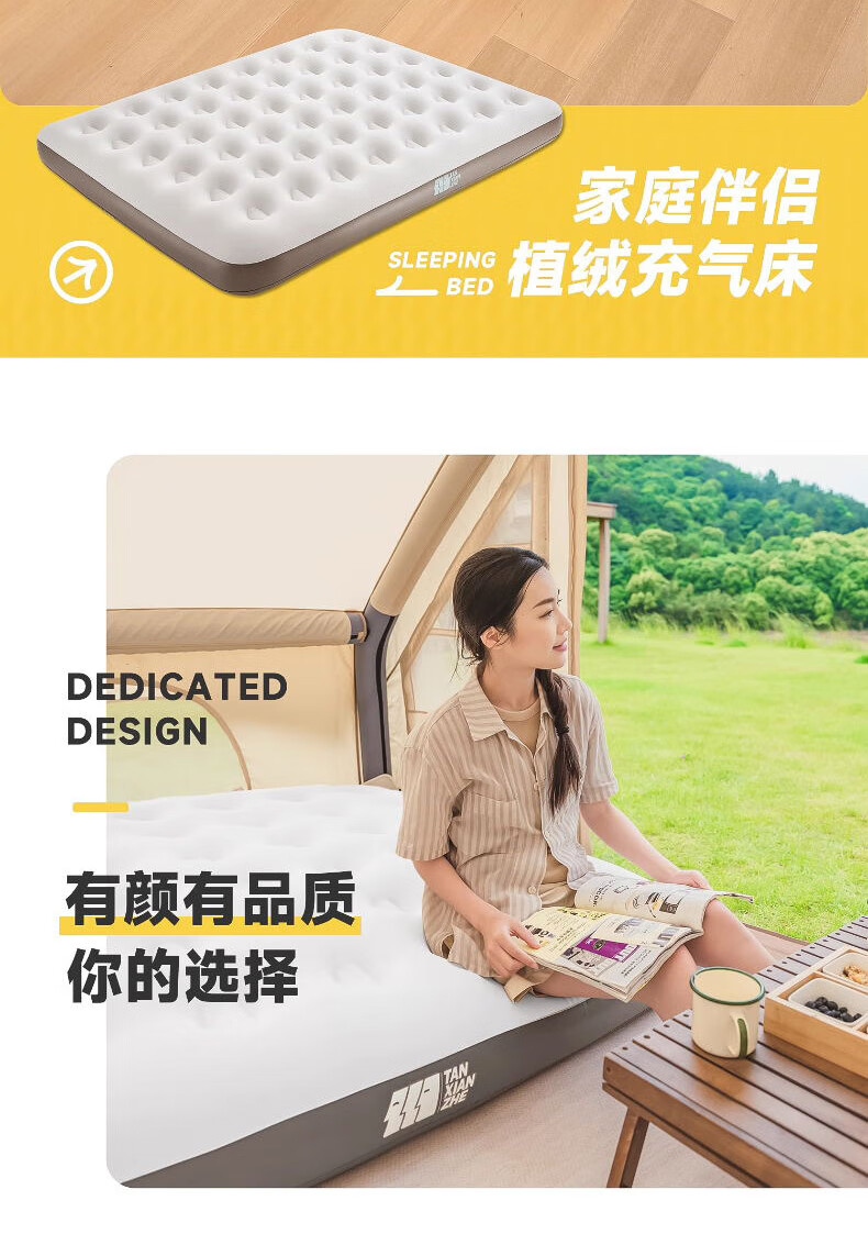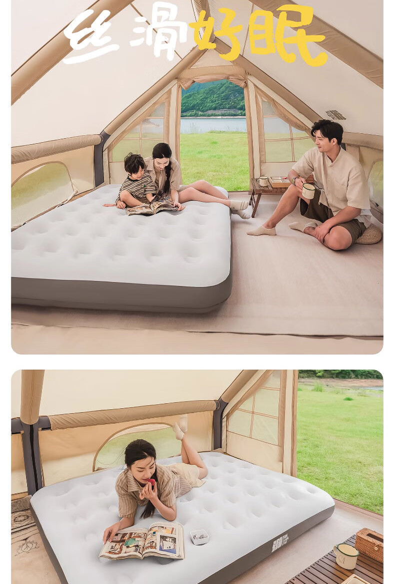 【露营开挂!双人充气床让我秒变户外睡神】⛺ 这床垫简直是为星空而生的!双人加宽款躺两大一小毫无压力,蜂窝纹防滑层让翻身像在自家大床,半夜娃滚到床边都没掉下去~ 手动泵实测3分钟充满,放气卷起来比瑜伽垫还小,塞进后备箱完全不占位! 重点夸材质!230g加密PVC耐磨到在碎石地随便拖,防潮层挡住草地湿气,暴雨夜帐篷进水了我们居然在“水床”上笑出声😂 配的修补贴至今没用上,但安全感拉满~ 京东折后还送收纳袋,闺蜜来家过夜抢着睡它,说比沙发还舒服!现在出门自驾游必带,老公再也不抱怨腰疼了~ 🌟💤 ⚠️提醒:初次使用有淡淡塑料味,通风半天就散!露营党/出租房神器,卷起来比猫还乖!