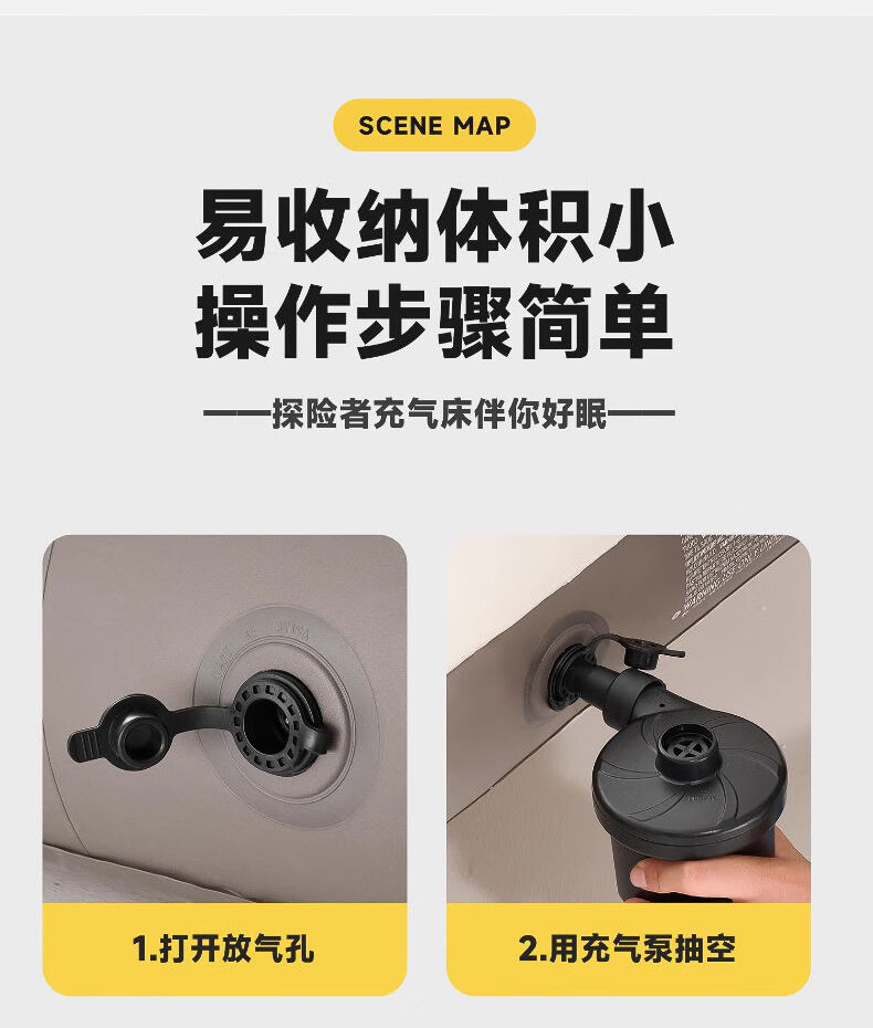 探险者(TAN XIAN ZHE)充气床垫户外帐篷充气垫自动充气床垫打地铺单人充气床双人气垫床 【单人】植绒充气床无泵