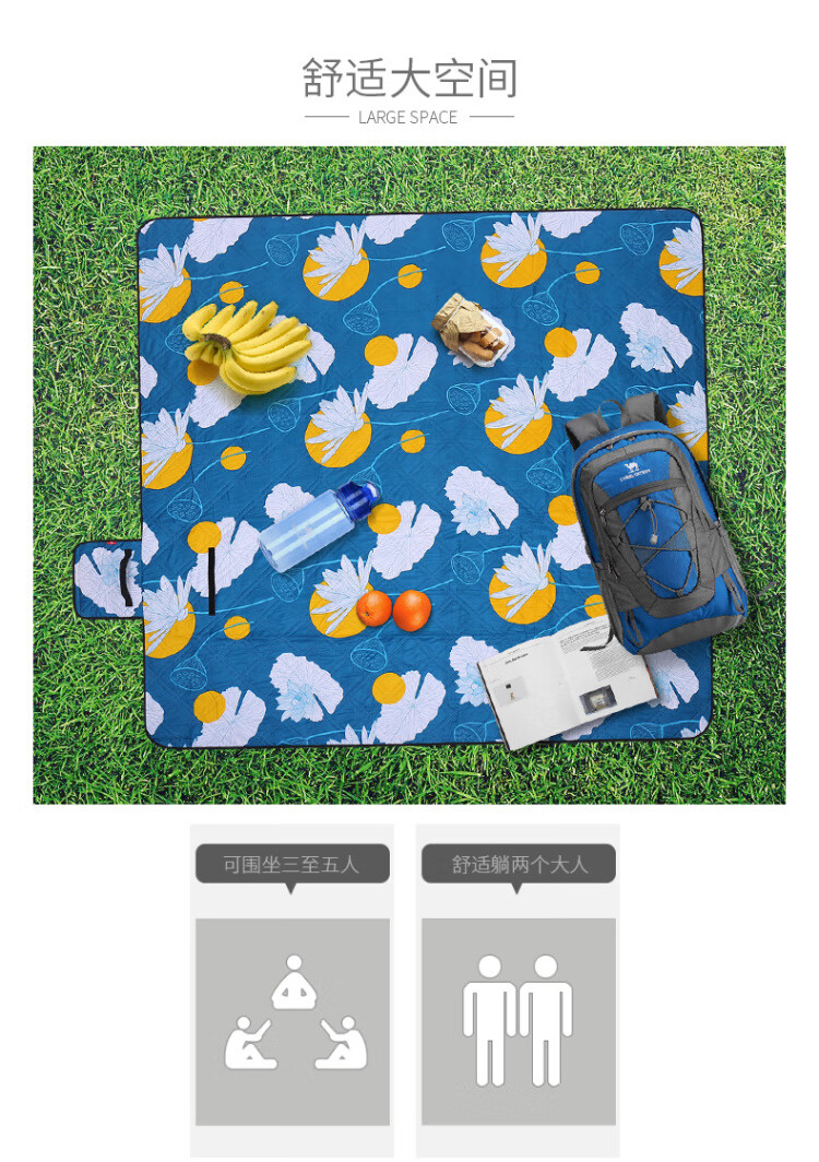 骆驼户外防潮野餐垫居家坐垫春游旅行草坪露营野餐布 A9SFSY007,魔幻蓝