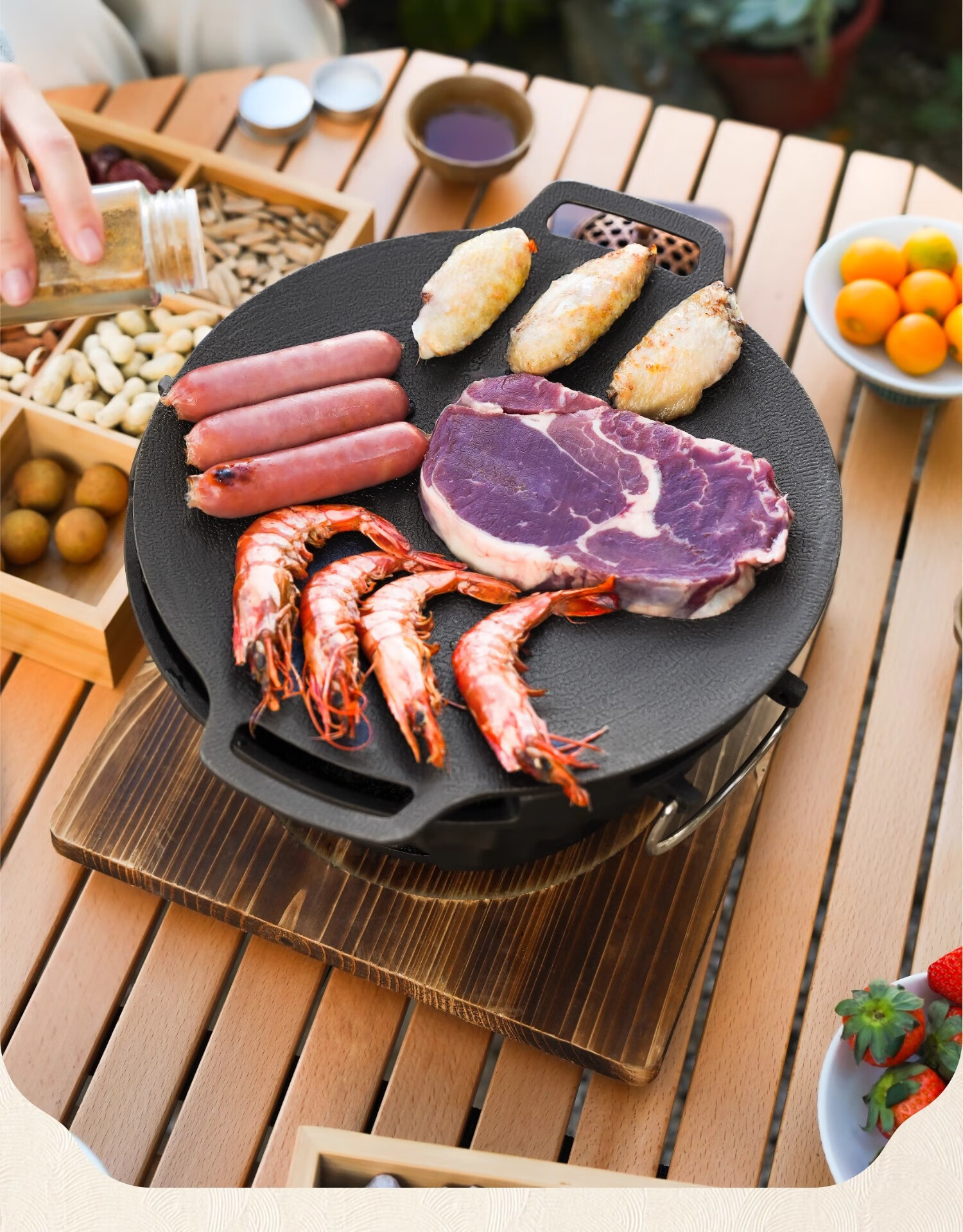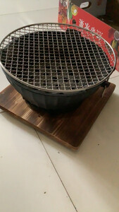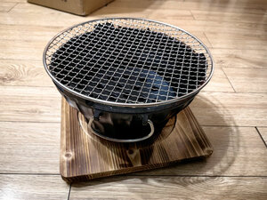 Nobana户外露营煮茶取暖炉铸铁碳炉野营家用木炭烧烤BBQ烤肉火锅碳烤炉 AHUI137 加大号28cm碳炉+木底座+圆形烤网30.5cm