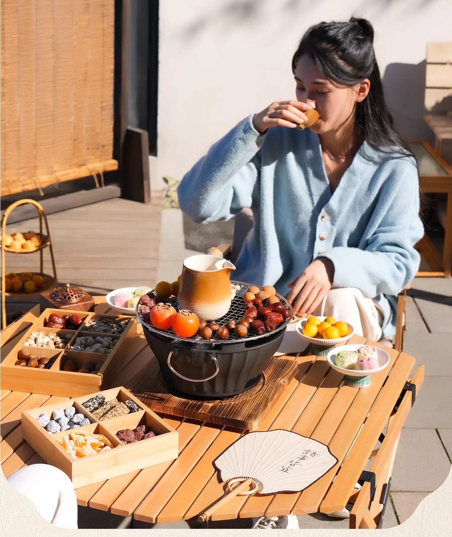 北极狼围炉煮茶家用庭院室内烤火盆煮茶烧水冬季户外露营烧烤取暖 59cm围炉5斤碳5件套