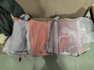 东西收到了,包裹很全,其中试了一下气垫,确实蛮软的,帐篷接了一下帐杆 ,蛮好装的,内外账看了一下材料,没有损坏,摸起来手感还行。