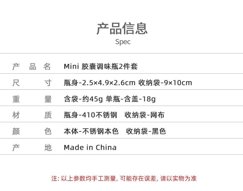CLS原版户外迷你调味瓶2件套便携旅行野餐登山钓鱼烧烤调料分装瓶 mini胶囊调味瓶【2件套】含收纳袋