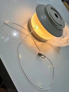 灯串的透光性超棒,亮起来像一串小水晶,挂在天幕都特别精致,白天不亮灯时当装饰绳也好看。