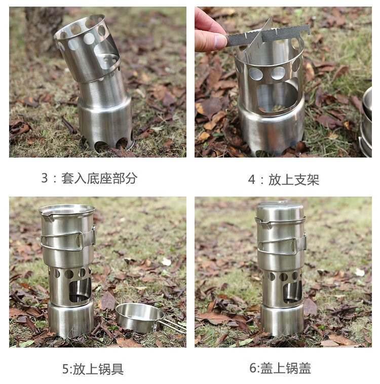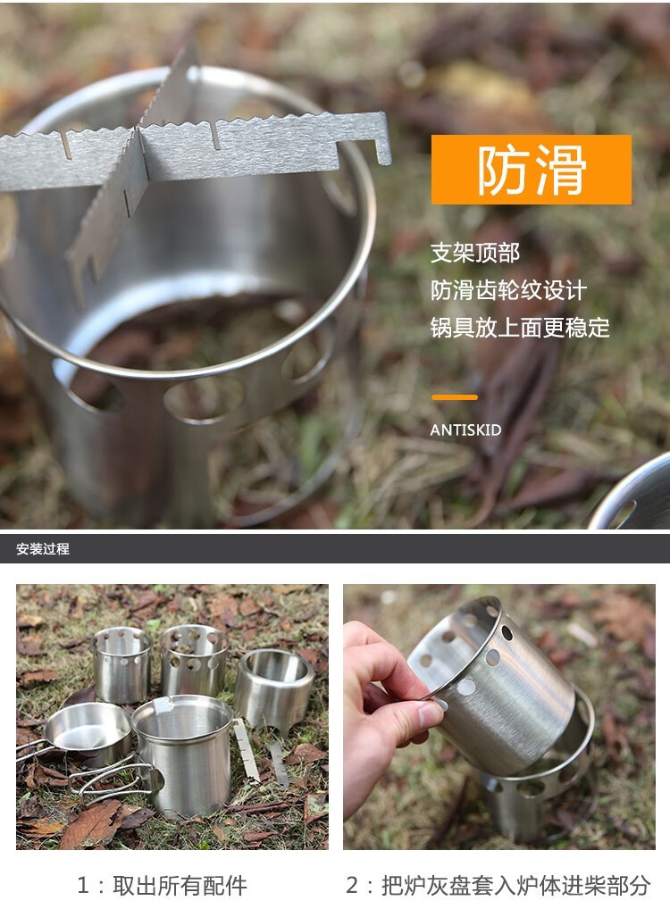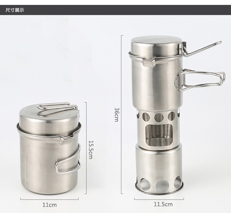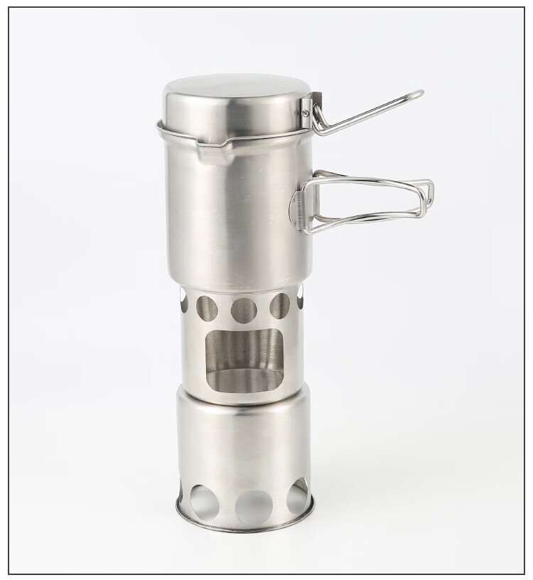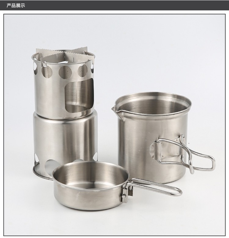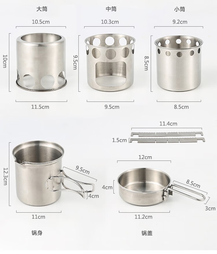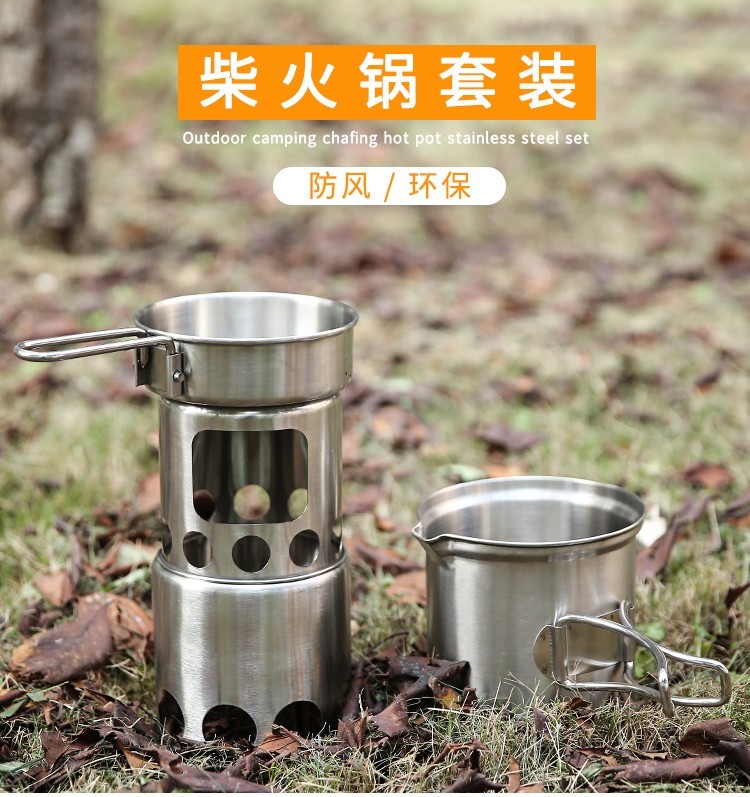 爱加芬 户外不锈钢柴火炉便携式套锅野营折叠防风炉灶烤火取暖炉烧烤套装 304不锈钢锅套装(汤锅+建锅)