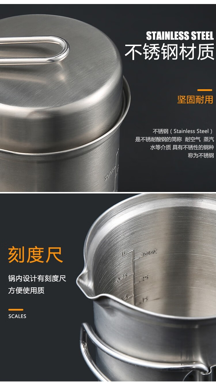 爱加芬户外不锈钢套锅露营便携自驾游烧水壶煮汤锅不粘煎盘野营锅具 木柄2+1套锅