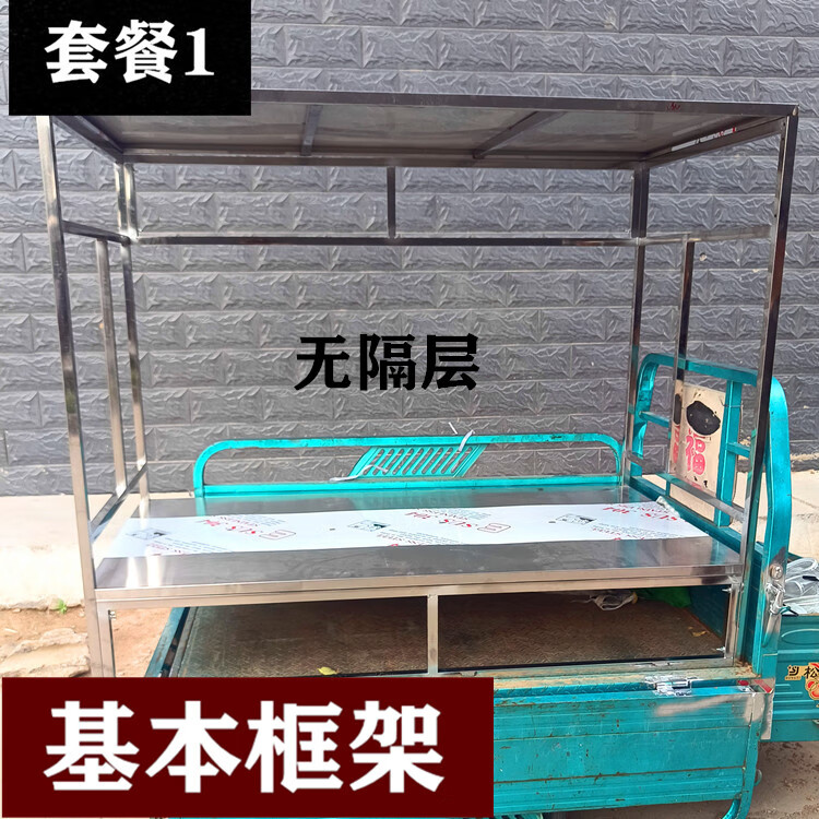 创京懿选创京懿选三轮车摆摊架子 不锈钢三轮车商用小吃车架子摆摊多功能 长1.2宽80厘高1.33 (套餐1)