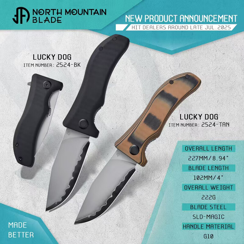 METALGROWL北山物志幸运狗李威廉合作款隐藏鱼鳍疯狗折刀SLD三枚夹钢 黑色