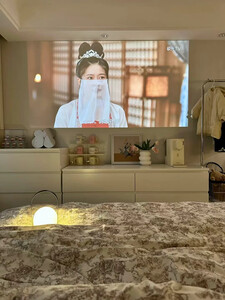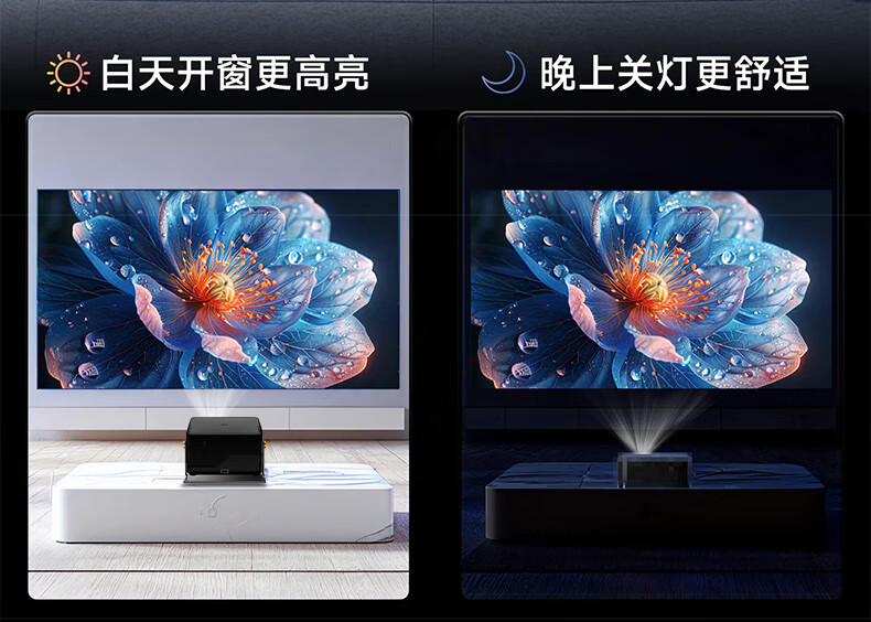 真实拍摄效果,对这个机器特别满意,因为我是比较喜欢关灯看的,比较有氛围,开灯或者白天看的效果也可以的,清晰度很好,特别是亮度很好,就把我房间照亮了很多,很推荐的。
