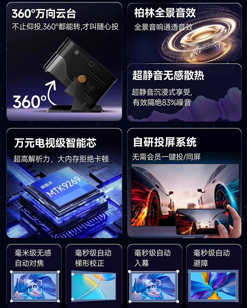 倍安士投影仪家用家庭影院4k超高清家用办公投影仪排行前十名投墙卧室客厅手机无线投屏电视一体机 4K解码亮度升级】全自动对焦丨手机投屏丨可装APP