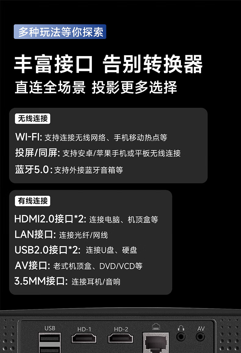 清晰度真惊艳我啊还是直投白墙的画质,投屏的话联网就行了,也不会卡顿,关了灯色彩值上了不止一个点,很值。