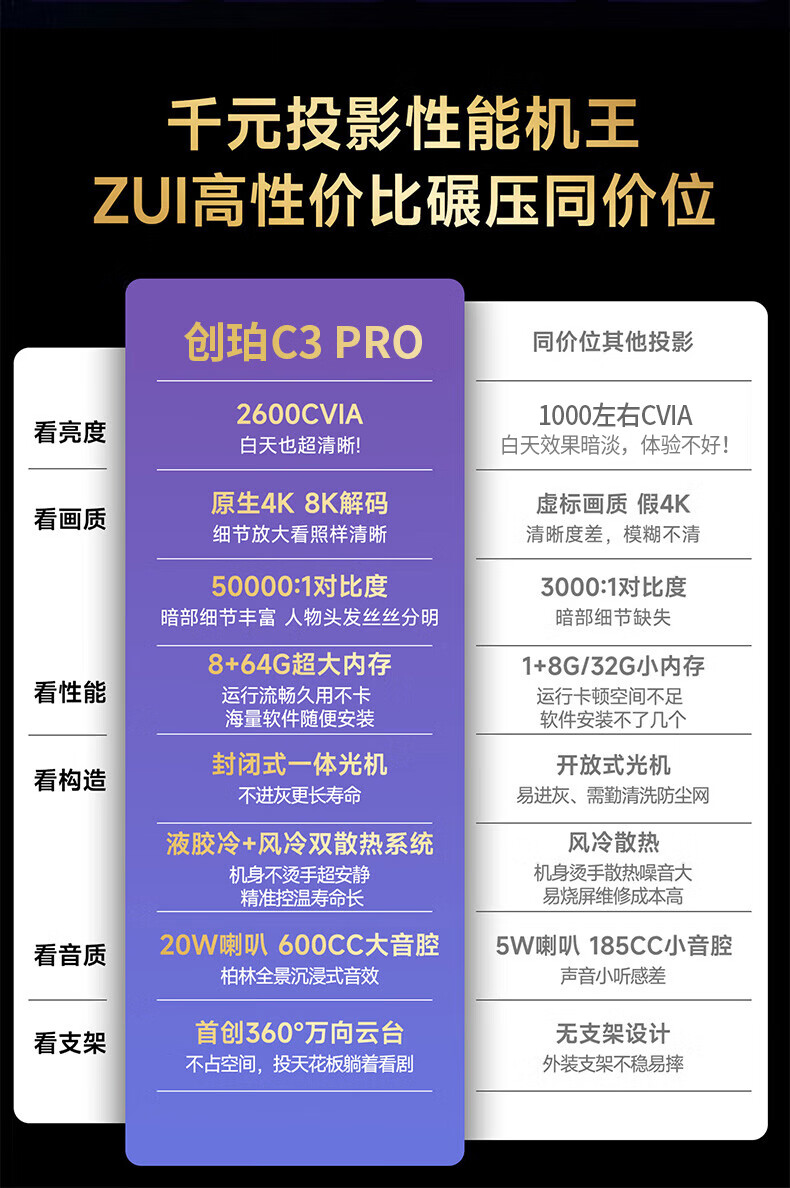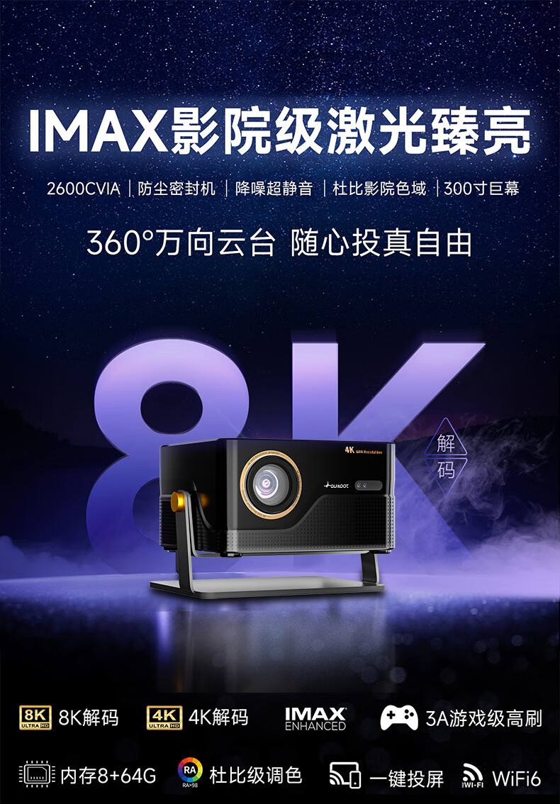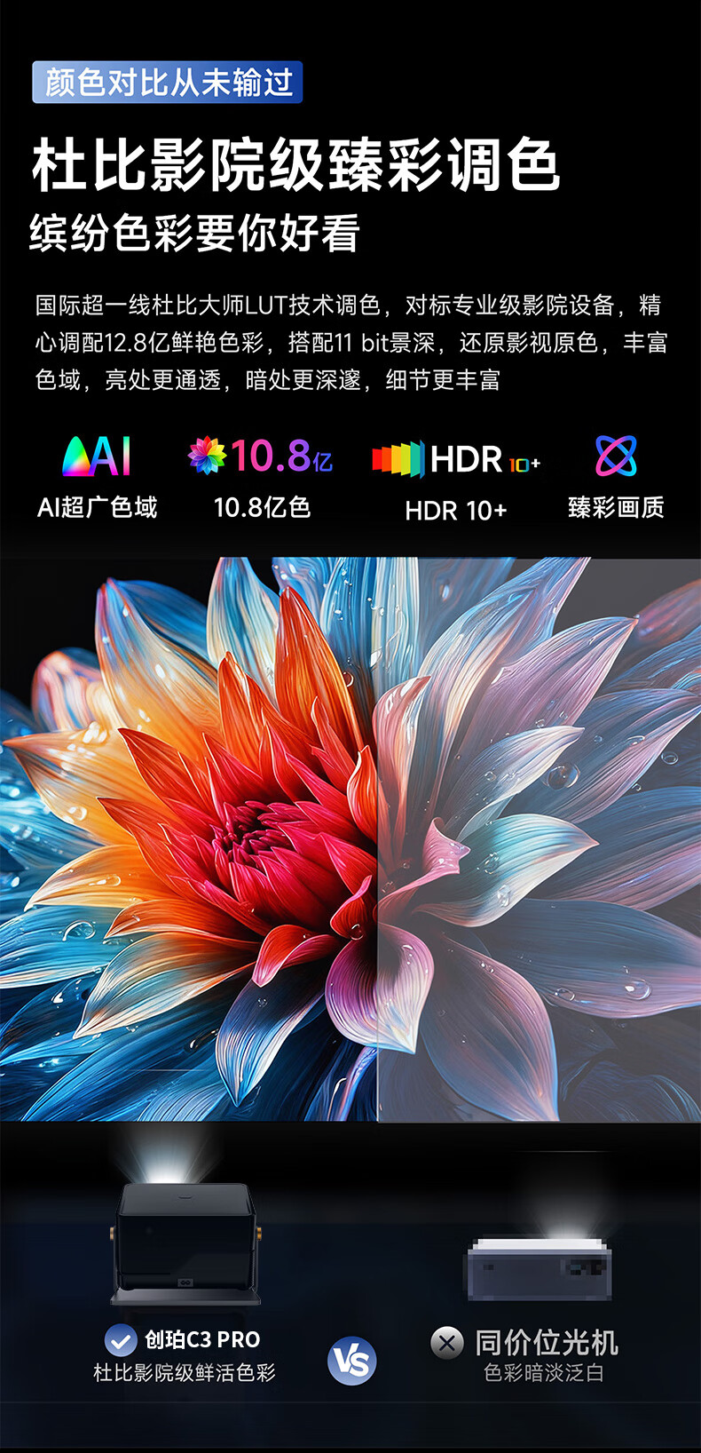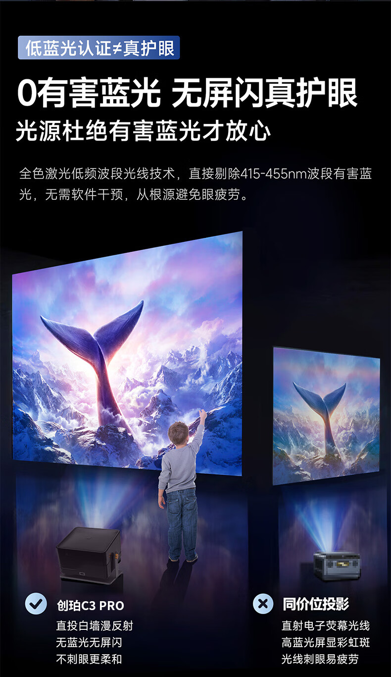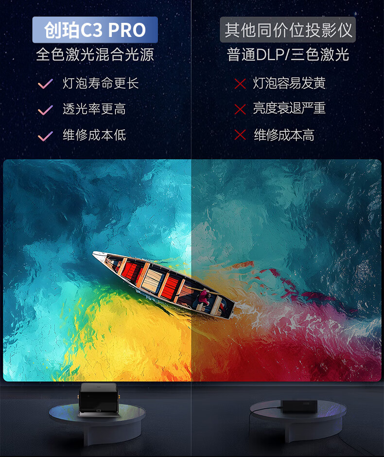 创珀激光投影仪家用办公解码4K8K超高清白天电视3D家庭影院无线手机投屏客厅卧室民宿投影机2026新款 C3Pro超清智能版(无云台)