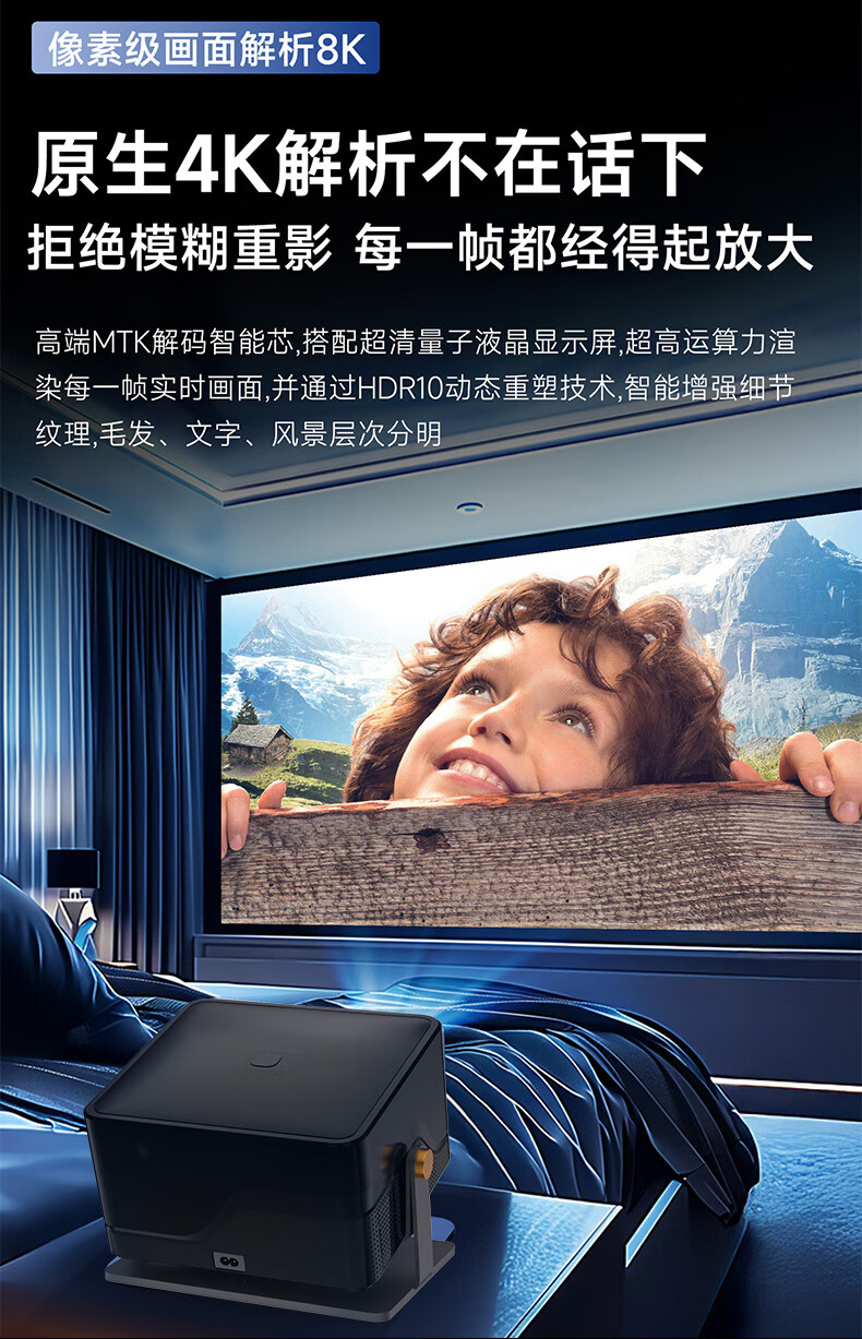 创珀新款KD8投影仪家用4k超高清白天直投大屏办公酒店激光对焦5g KD8全功能语音版 行业首款高透6寸LCD屏-万元级色彩画质