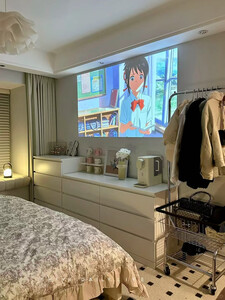 我床对面有一片白墙,就一直很想买一台投影仪投屏在上面,然后躺在床上看动漫看电视剧,这下终于实现了。我看了一下动漫,真的可以的,色彩鲜艳无偏差,清晰度也很好,爱了爱了。