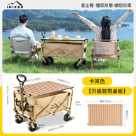 爱山客露营车户外折叠推车野营手推车露营野餐装备拖车手拉车桌板 200L 卡其色【静音实心轮+桌板】 全钢车架