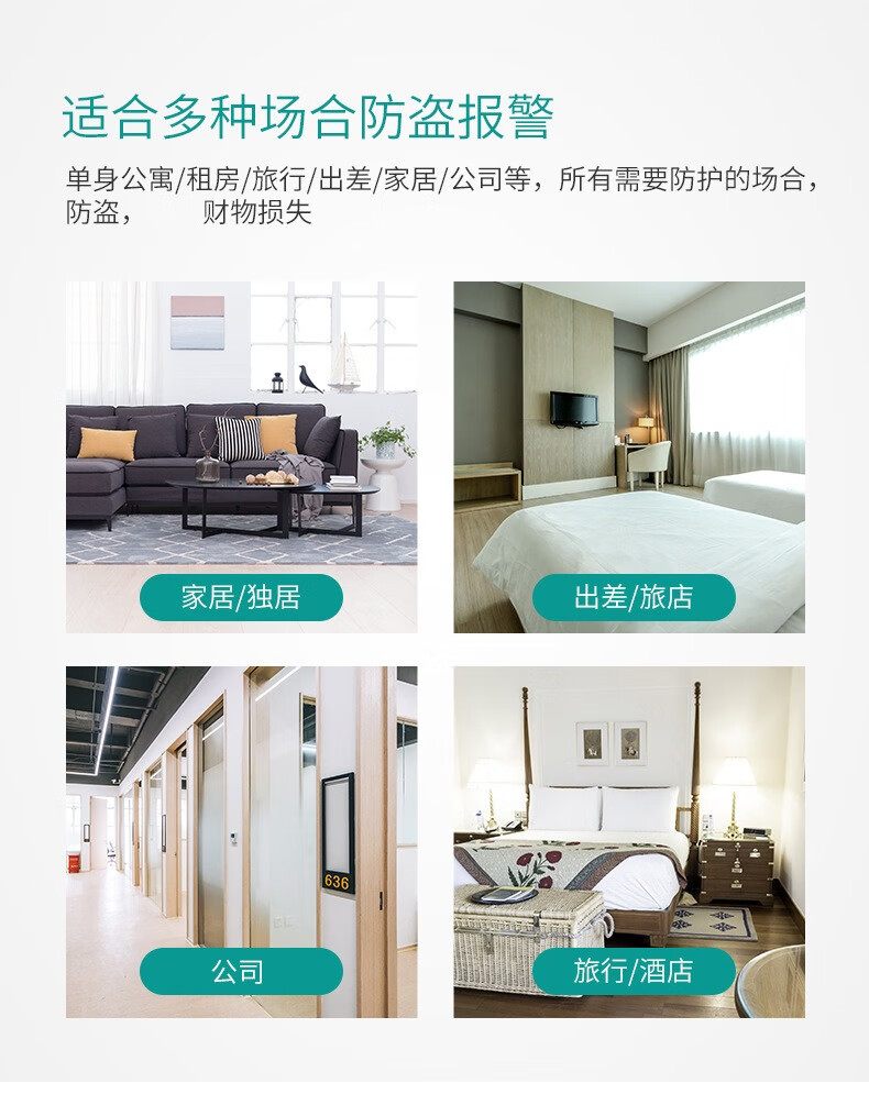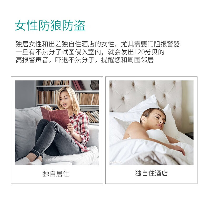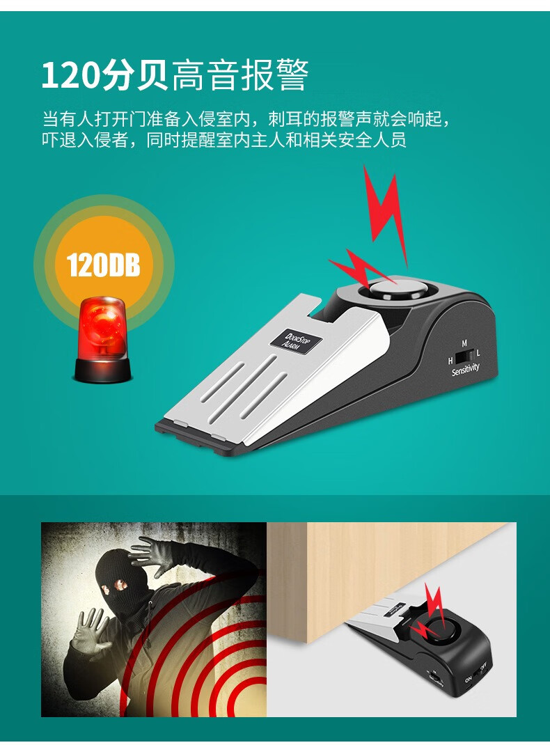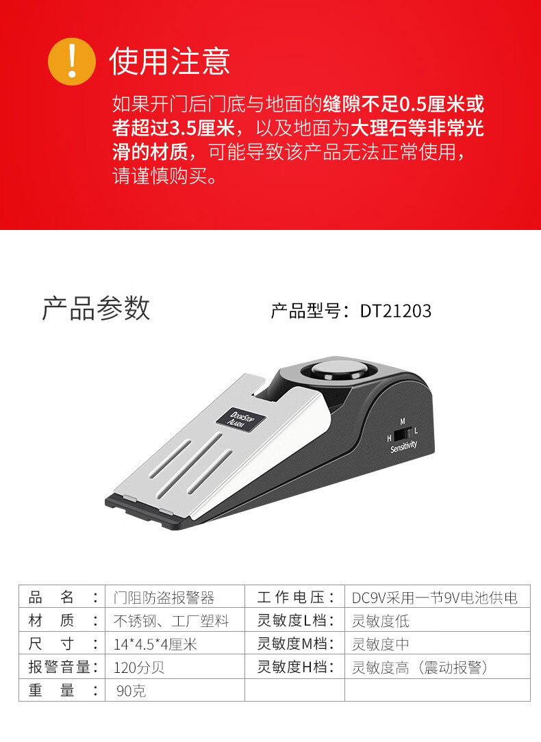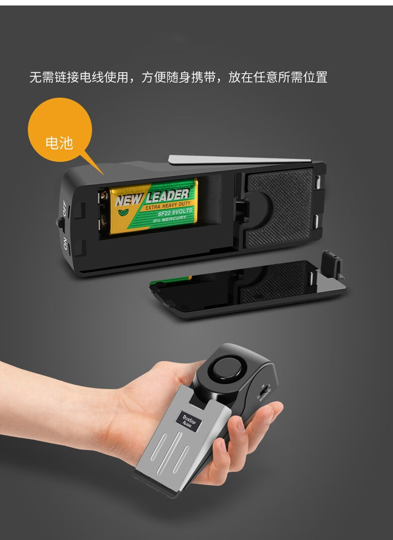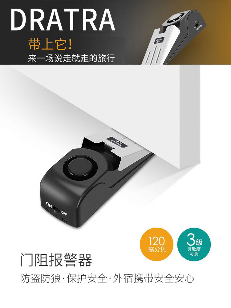 DRATRA阻门器女性旅行便携防盗卡门独居顶门器酒店宾馆家用门窗报警器 阻门防盗报警器(无电池)