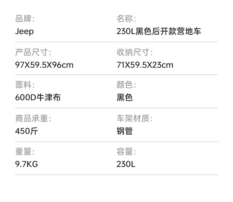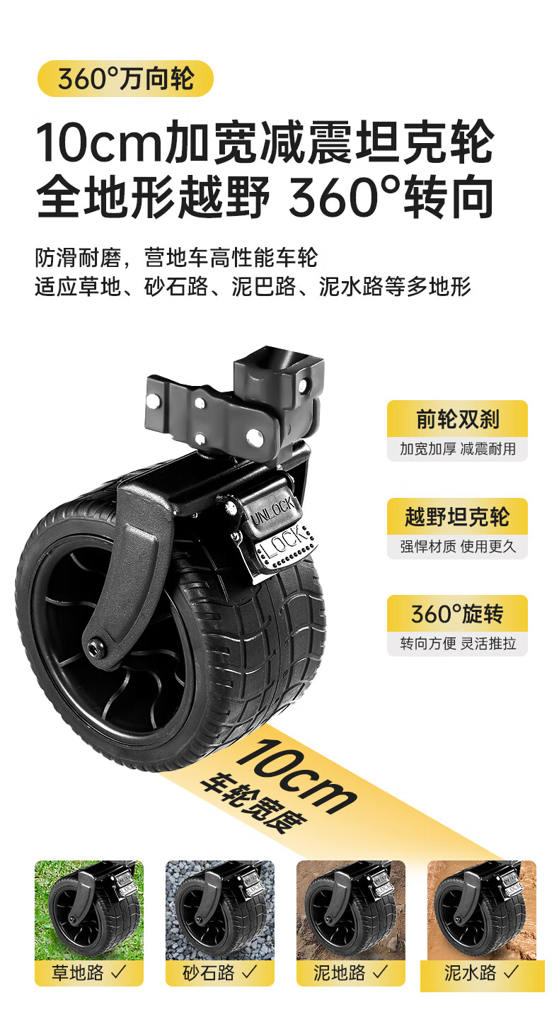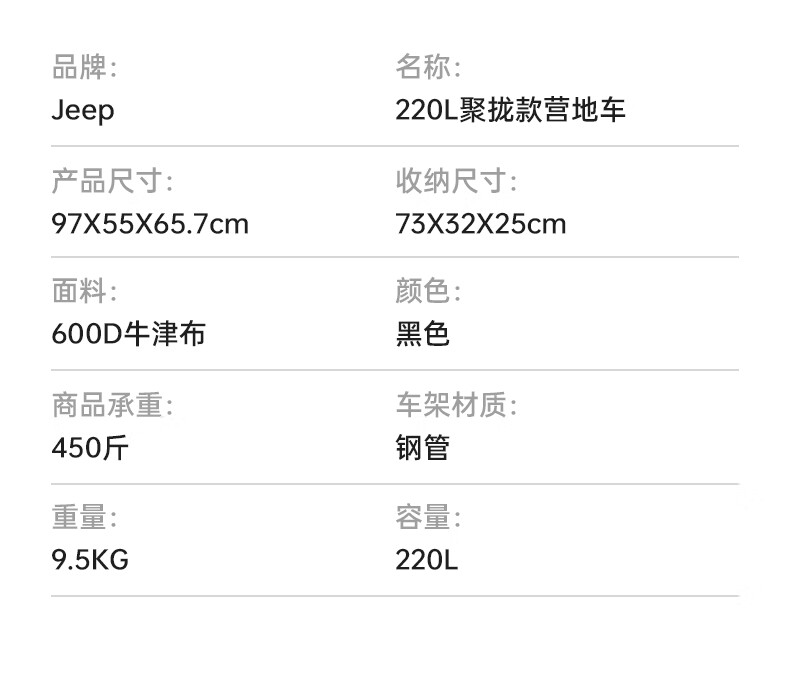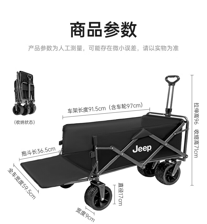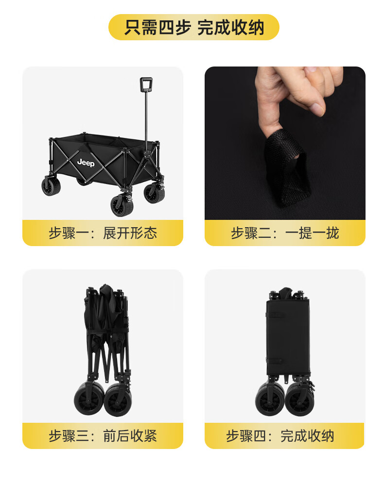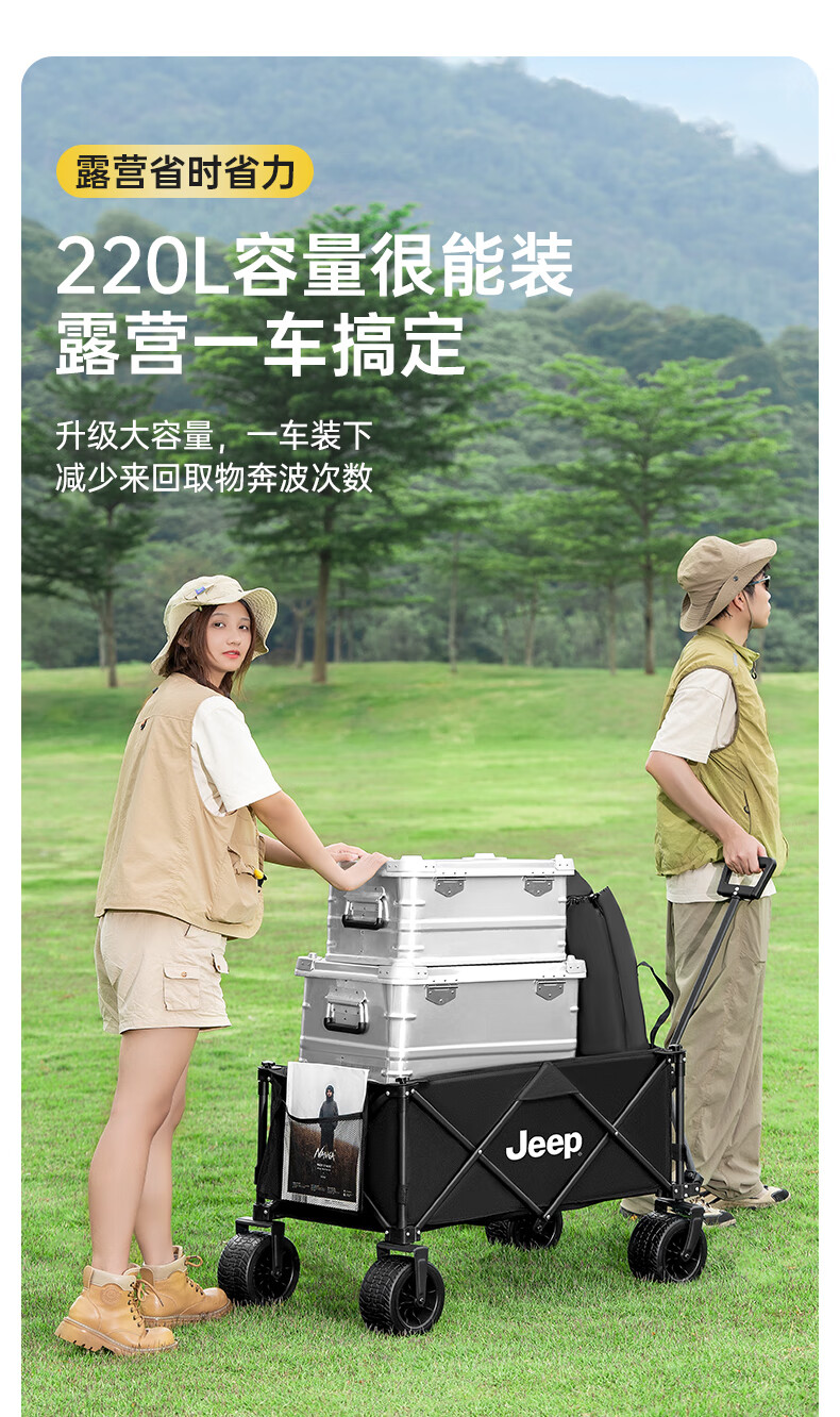 JEEP 户外露营折叠车野餐车营地车露营装备便捷拖车推车购物 旅游买菜 聚拢款坦克轮黑色+碳钢桌板