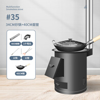 柴火灶家用农村无烟烧木柴新型大锅台室内取暖炉子移动户外多功能 35#新黑圆桶+34炒锅40cm管配件