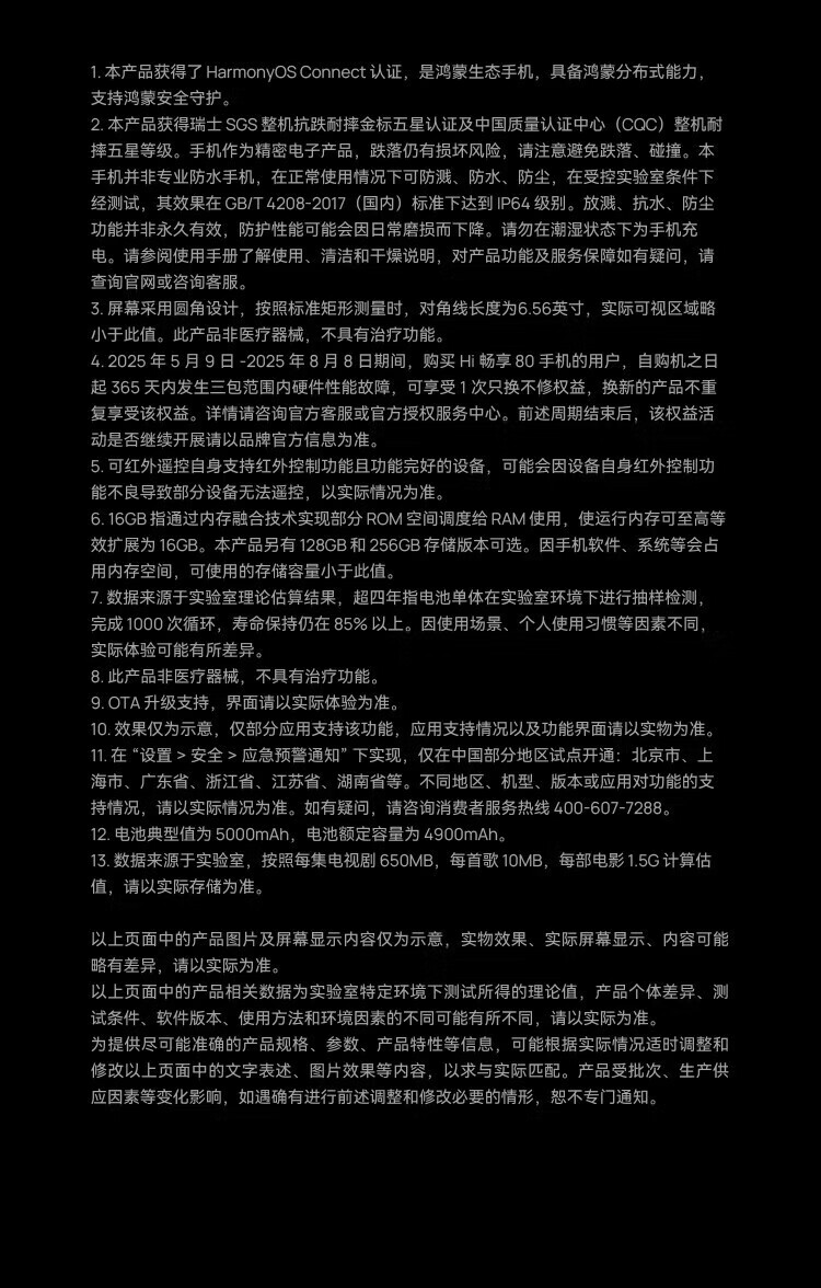 华为智选新品5G手机Hi畅享80s 新机2025上市 地震预警 智能红外遥控 轻薄长续航 双五星耐摔防水 曜石黑【8+256GB】 豪礼套装版+180天碎屏险+2年质保
