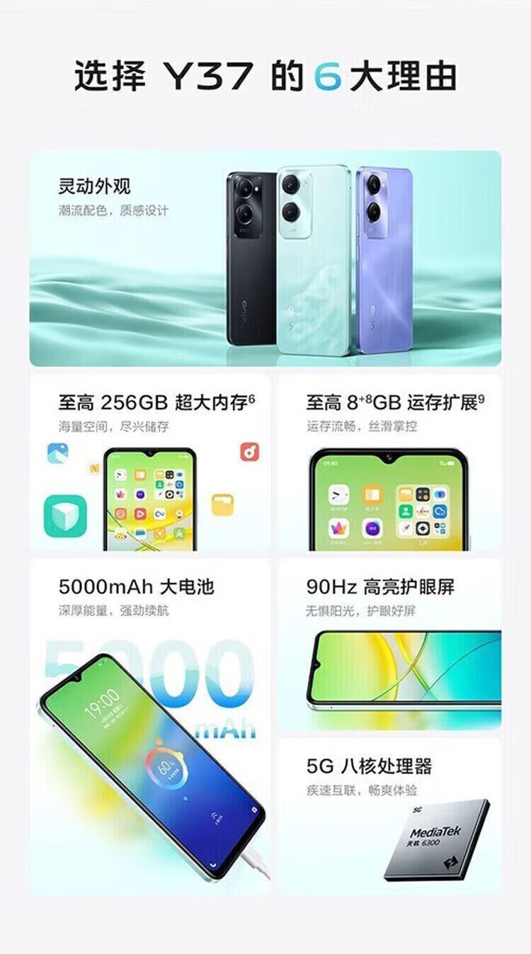 vivo Y37 正品5G智能手机 大屏拍照大电量全网通双卡双待备用手机 Y37 月影黑 4GB+128GB 官方标配 全网通5G