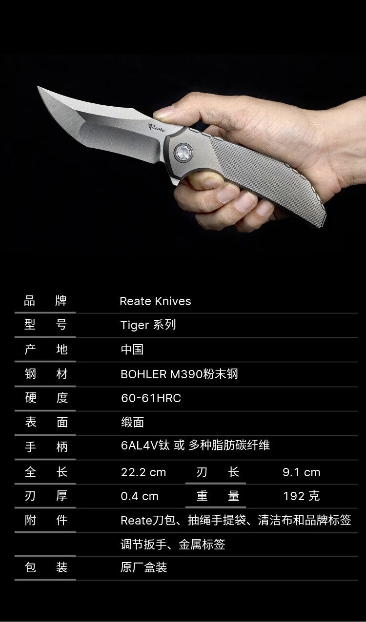 REATE锐特Reate碳纤钛柄M390粉末钢户外战术露营装备高硬度便携折叠刀 脂肪碳纤维 黑色迷彩