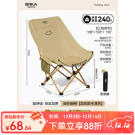 原始人户外折叠椅便携式钓鱼椅子月亮椅沙滩躺椅露营野餐小凳子休闲椅 卡其经典款-三档可调