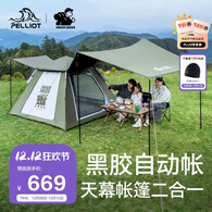 伯希和(Pelliot)HIKER露营天幕帐篷二合一钛黑胶自动速开遮阳公园帐16402709绿色