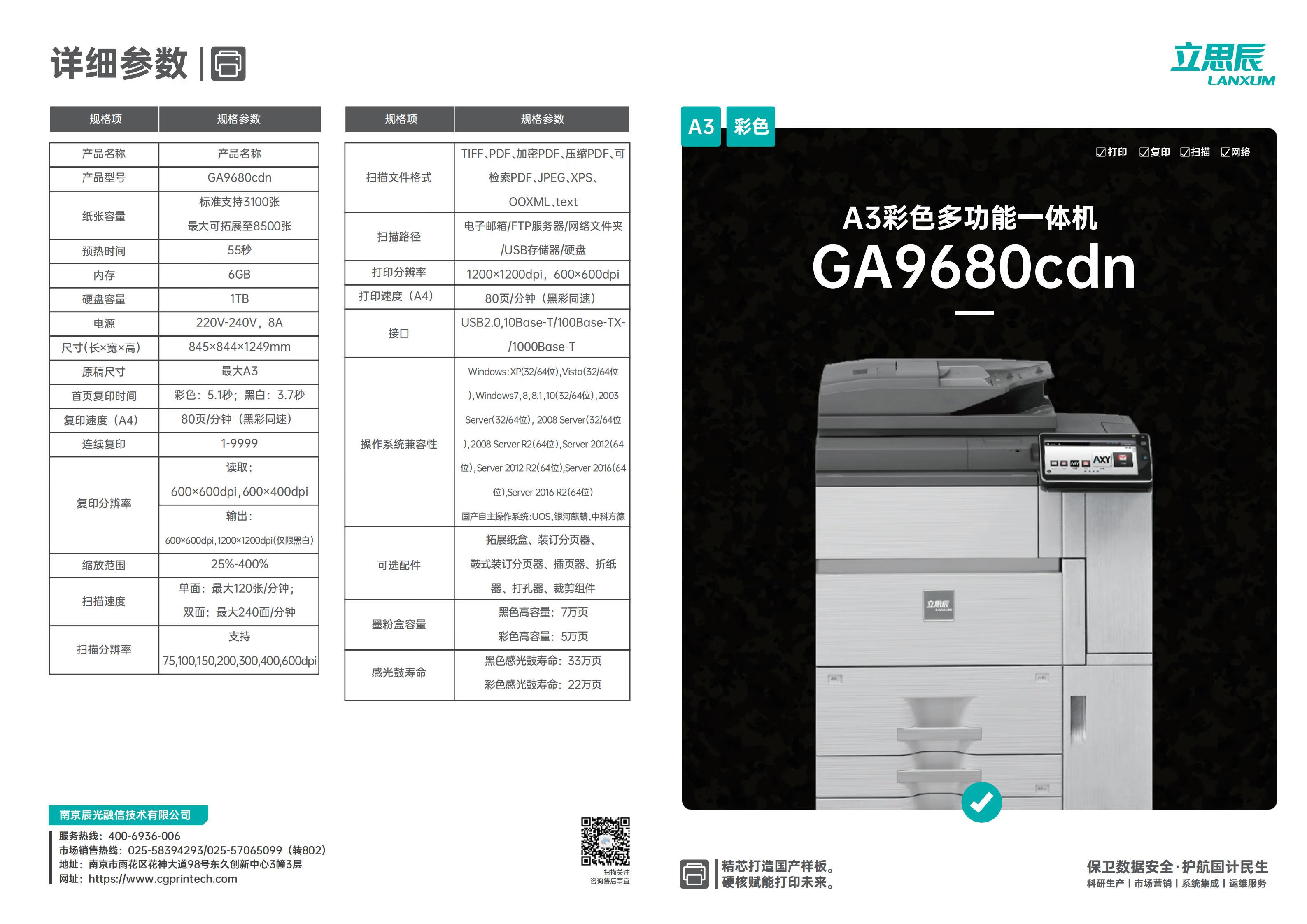 立思辰(LANXUM)A3彩色复合机GA9680cdn多功能一体机国产A3大型打印机复印打印扫描