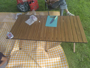 跟着露营椅一起买的,支架很稳固,方便收纳,木纹质感。桌子的膜很难撕,不如不撕。卡扣的滑轨有两处卡顿,不够顺滑,大力出奇迹。目前其他的用着没问题,期待后续产品的表现
