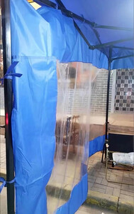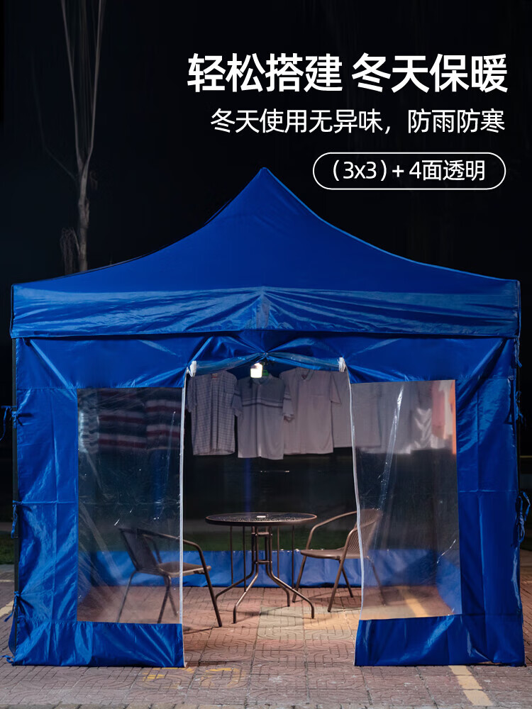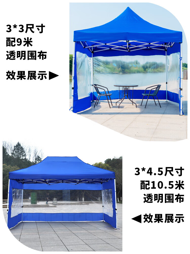 优莱可可透明围布帐篷布遮阳挡风棚摆摊用加厚篷雨棚围挡四脚户外大伞四角 3米-蓝色透明围布