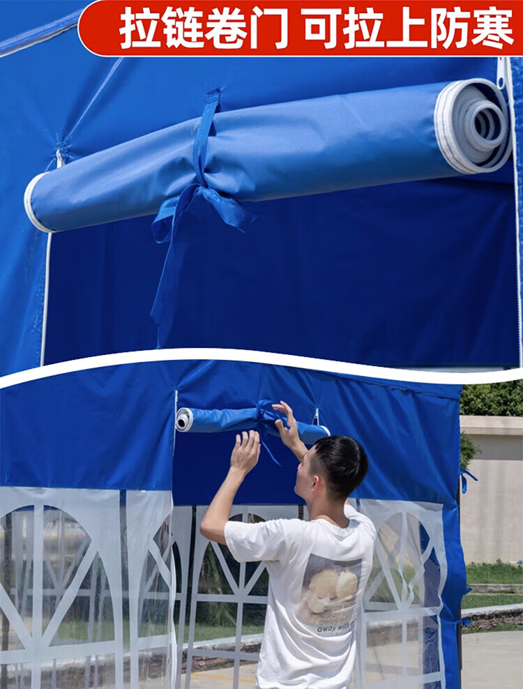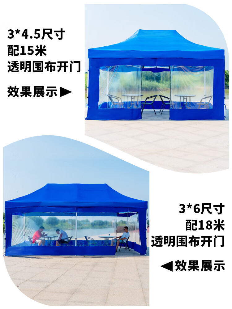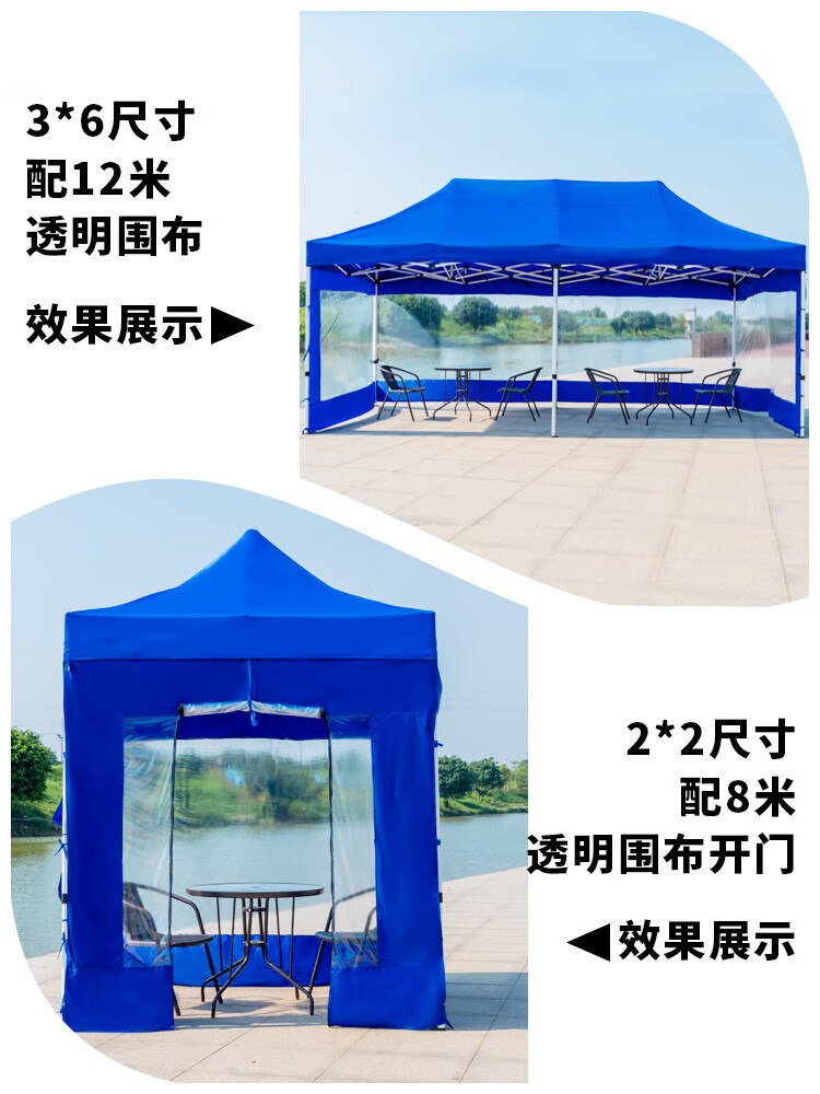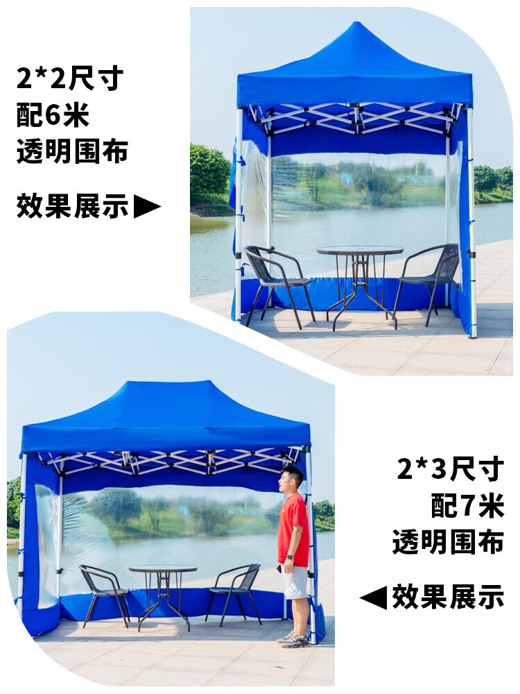 歌途乐透明围布遮阳挡风棚摆摊用加厚篷雨棚帐篷布围挡四脚户外大伞四角 2米-蓝色透明围布