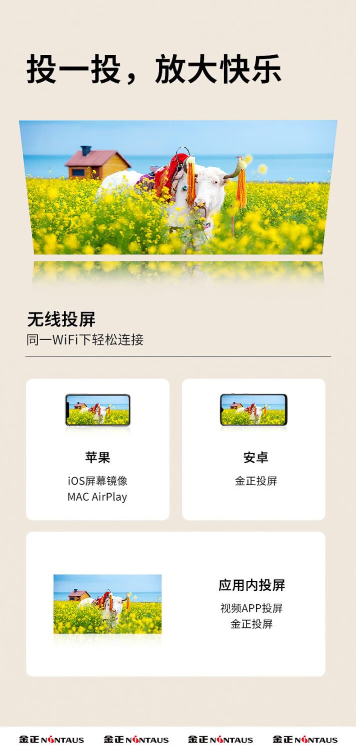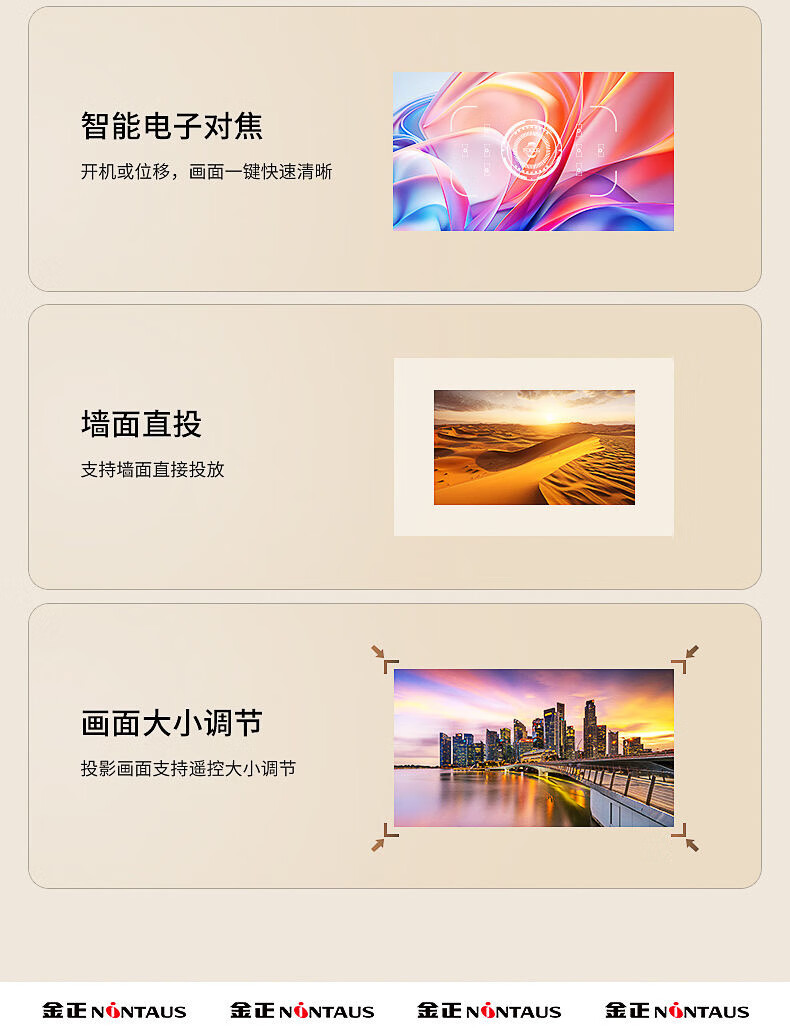 金正(NINTAUS)2025新款超高清投影仪家用卧室家庭影院手机5g投屏投影机 云台支架顶配款【一键自动对焦+AI语音声控】 【金正投影+旗舰保障+试用】