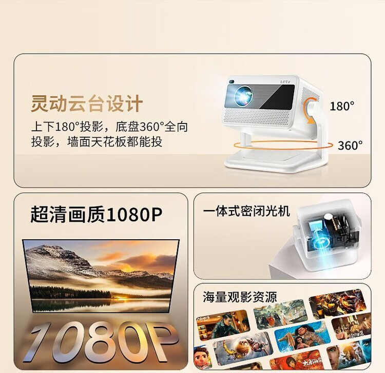 乐视(Letv)X18投影仪超高清家用客厅卧室办公1080P超清投影机2025 Letv乐视X18 乐视超高清智能云台【送豪华大礼包】