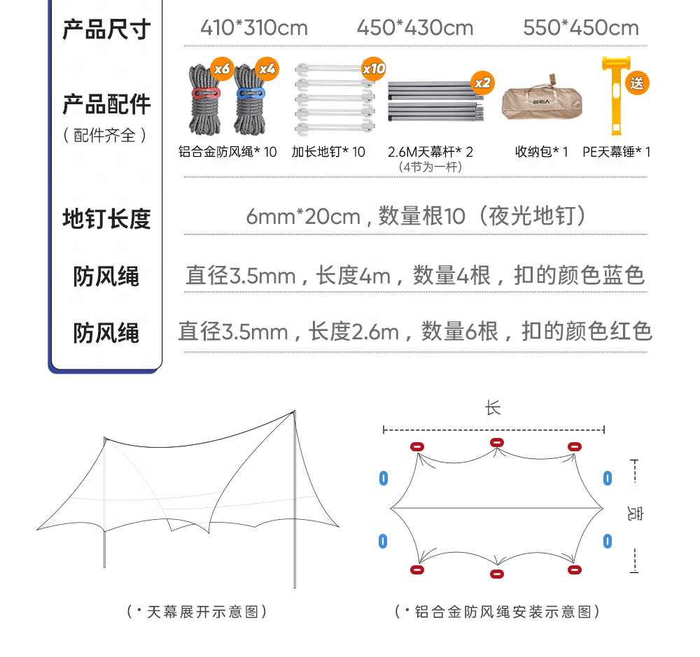 天幕收到了,拆开看了一下,很满意,做工,配置都不错,还没使用,准备有时间去试一下,看到好多人用这个牌子的天幕,都觉得还不错,直接购买了,物流也非常给力,一天就到了