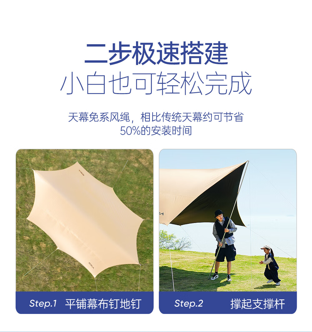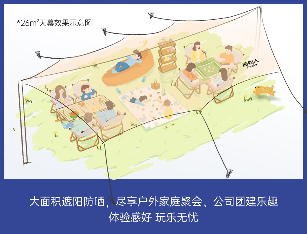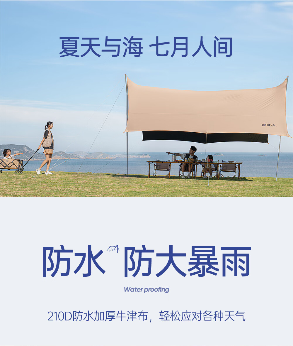 原始人这款天幕,真是物超所值的典范! 第一次搭建时,我和朋友两人看着说明书,不到十分钟就轻松立起来了,配件齐全,设计非常人性化,安装方便得超乎想象。 撑开后空间巨大,面料厚实,遮阳和防风效果都特别棒。无论是公园野餐还是近郊露营,它都能立刻提升幸福感。这次购物体验非常好,绝对是露营入门或升级的必入好物!