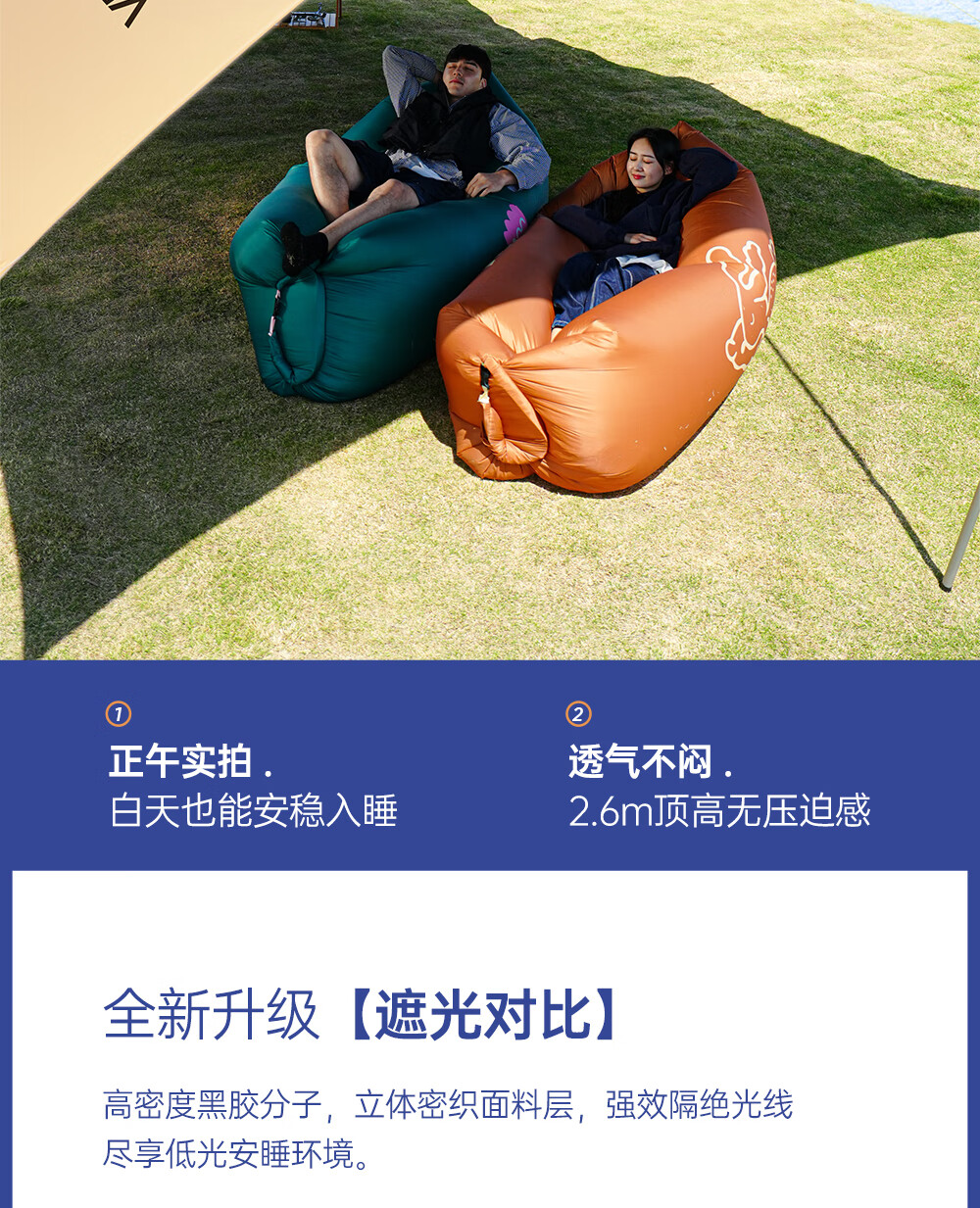 户外懒人充气沙发空气床垫单人躺椅便携式野营午休音乐节露营收 天绿色[承重强/3秒速充]送收纳