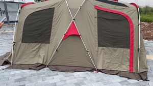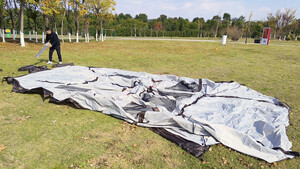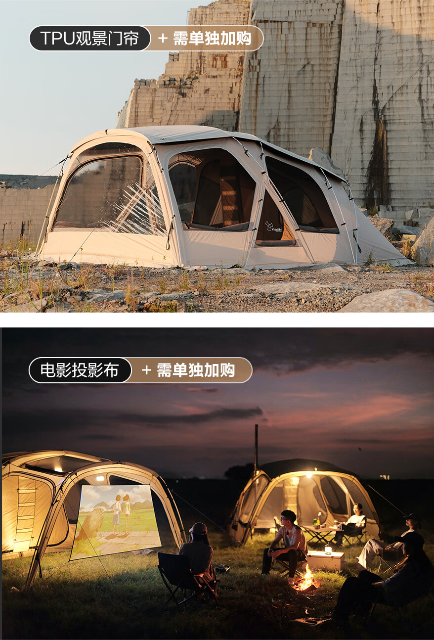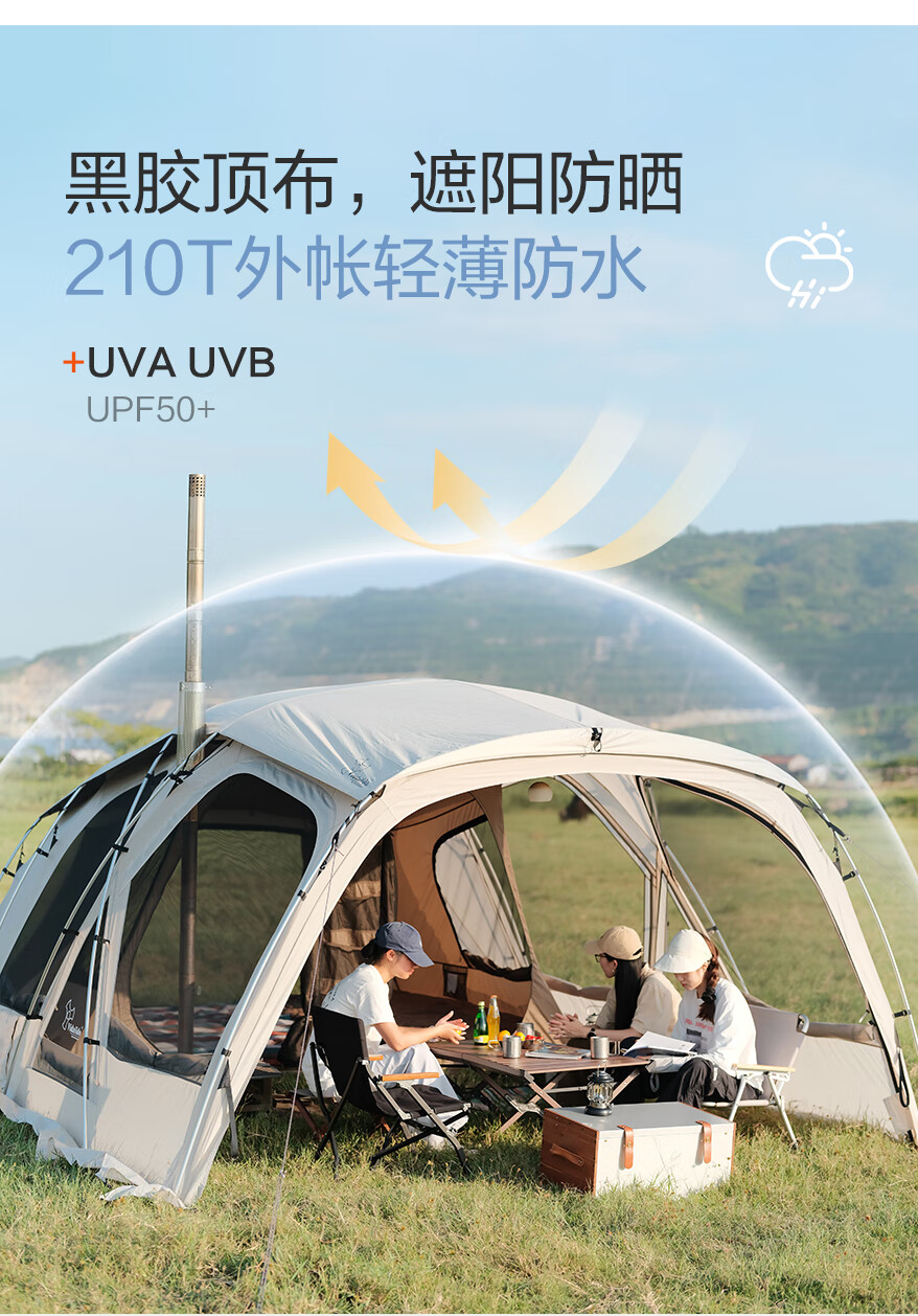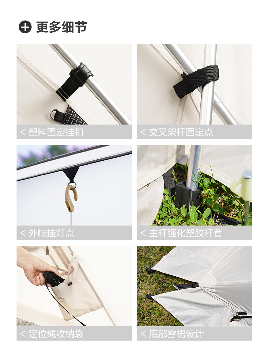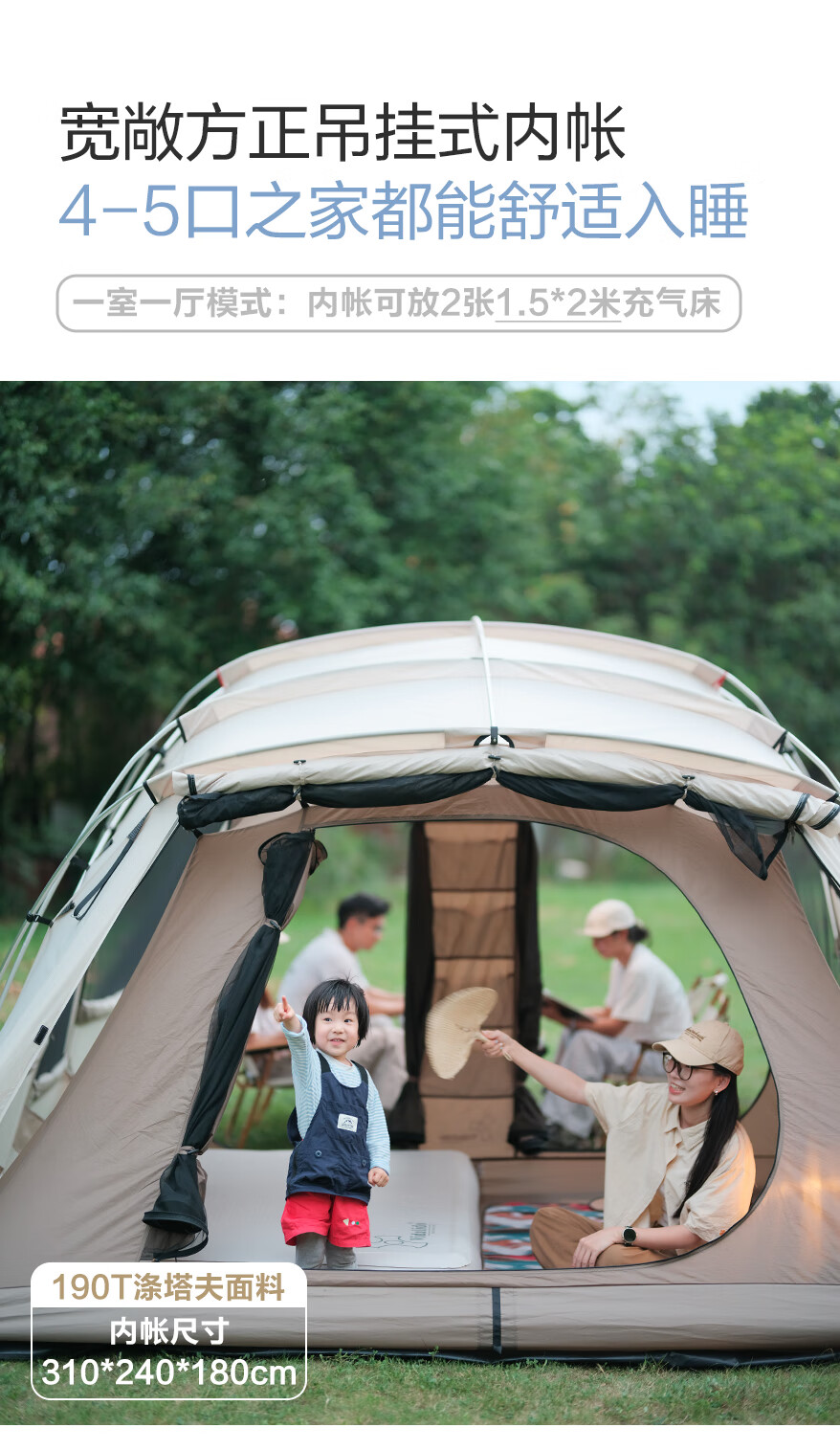 打一次买真大的帐篷 铺到地上真是惊到我了 帐篷真的太大了 有雪裙一年四季都可以玩用 稍微不满意的地方就是内帐有点小 长度够了宽度有点窄 别的没啥缺点
