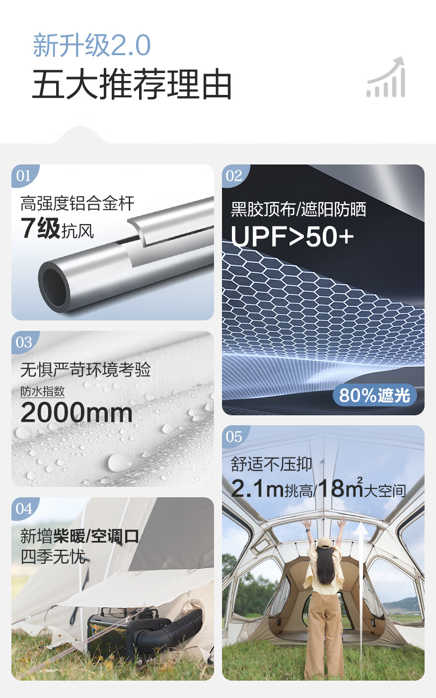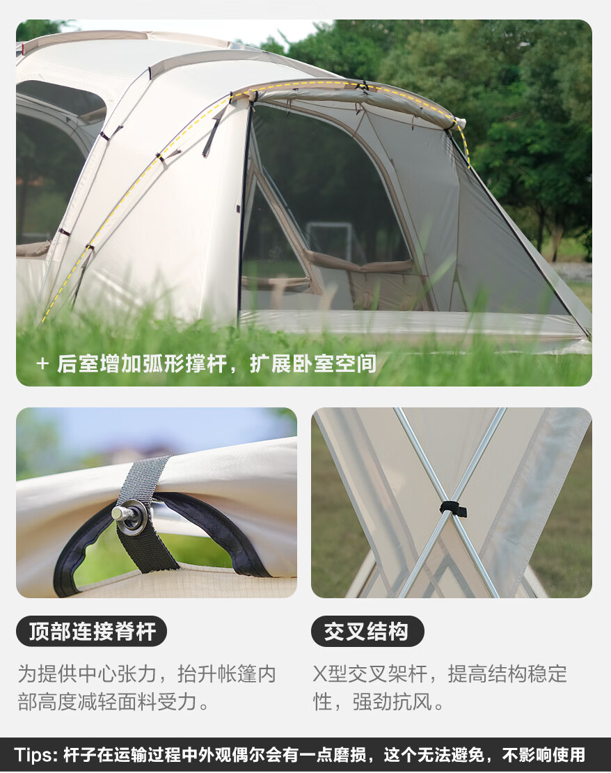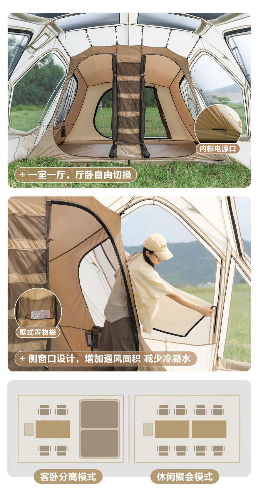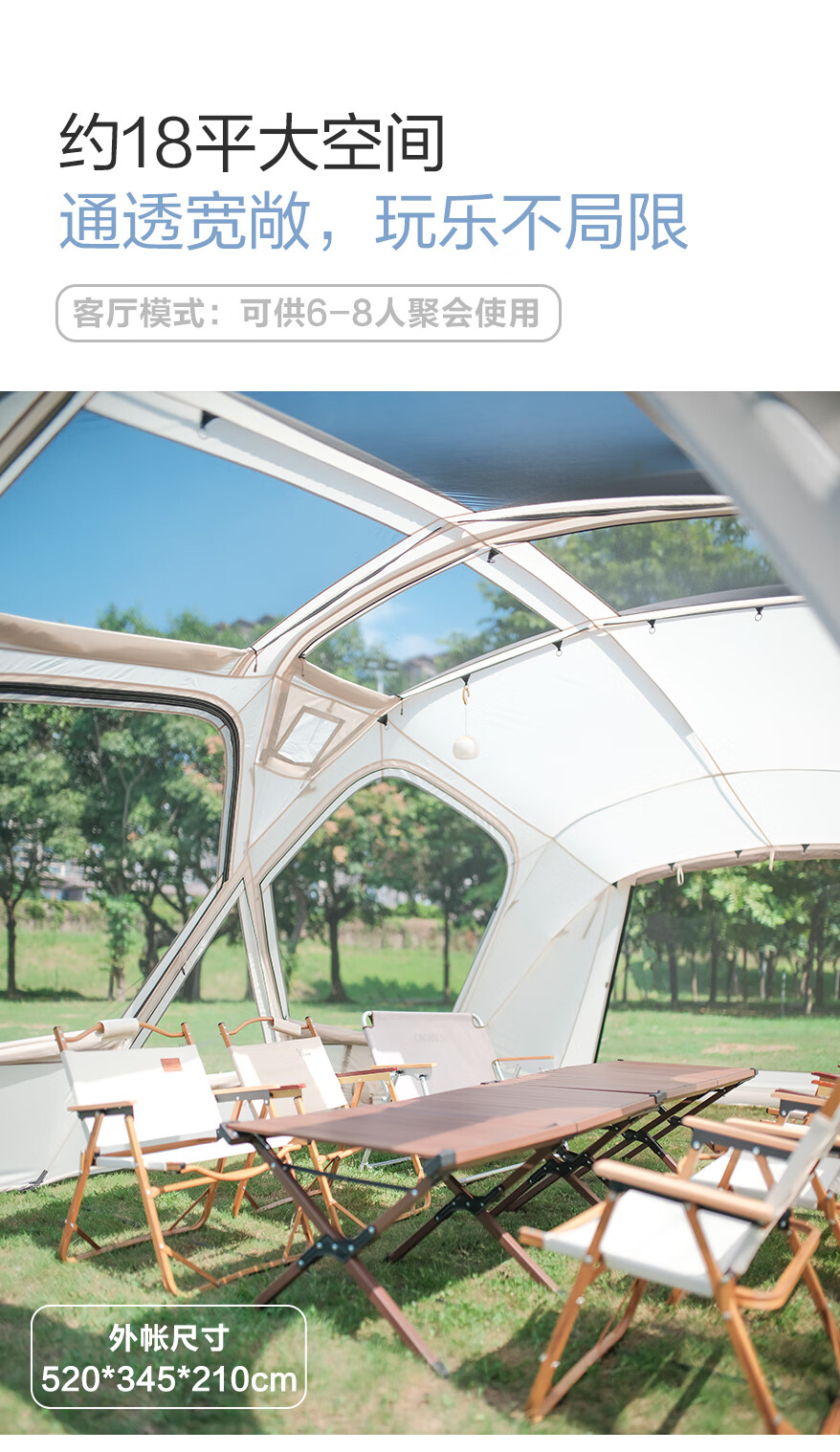 以前用的金字塔帐篷,空间比较局促,这次换帐篷也是经过多方比对,挪客,牧高笛,维达利多都有看过,~,~反复对比,而且国产这些年越做越好,最终选定了这款帐篷,做工没得说,空间也大,最最重要一点,售后是我京东购物以来体验最好的,没有之一,第一次开帐因为不知名原因有些瑕疵,经与售后沟通现有帐篷寄回厂家,厂家收到第一时间更换邮寄回来,而且为了不耽误下次露营,直接发顺丰,体验感非常不错,这次大促销瞬间感觉落差太大,因为过了保价期经与售后申请,同意退差价,讲真的,这点以前从来没有那个商家可以做到,非常感谢售后小姐姐🌹,又可以入手几件小商品了😀