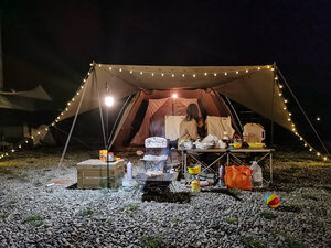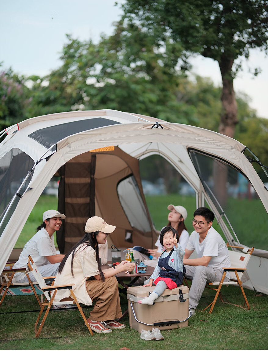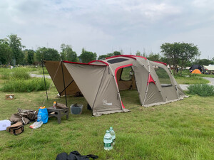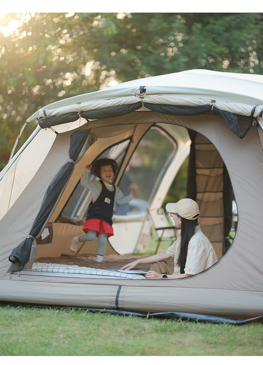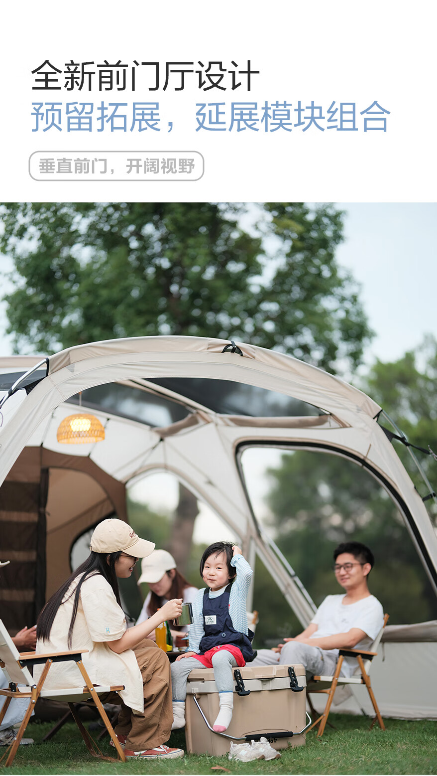 做了很久的攻略才下手买的,因为第一次露营买的速开帐,下雨天过夜的话鞋子都没有地方放。现在换成隧道帐就不用担心下雨了。颜值很高,做工也不错,比之前买的好。