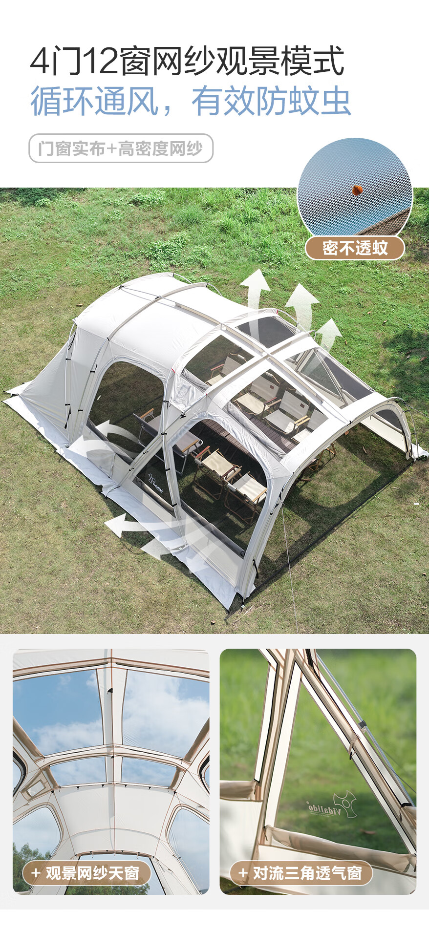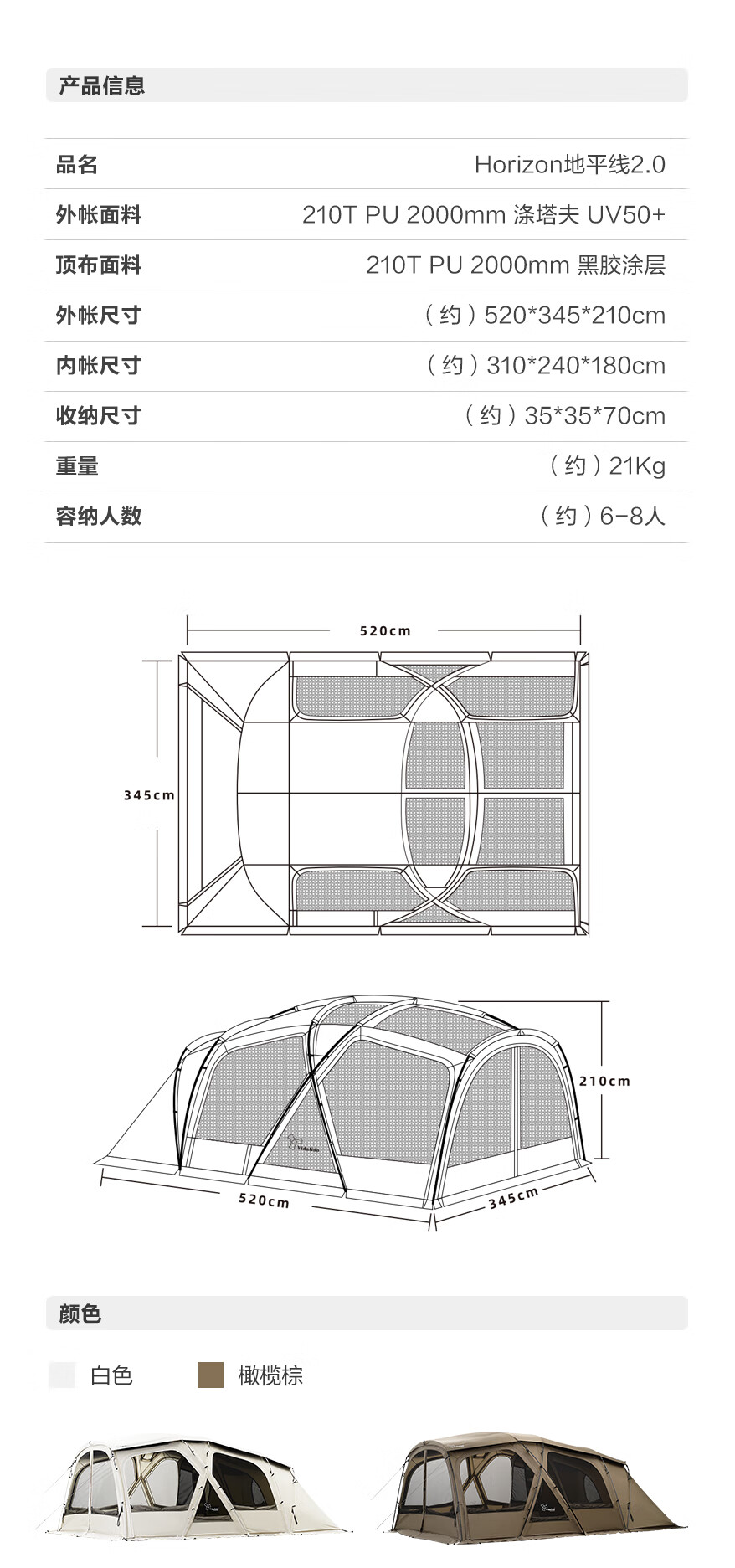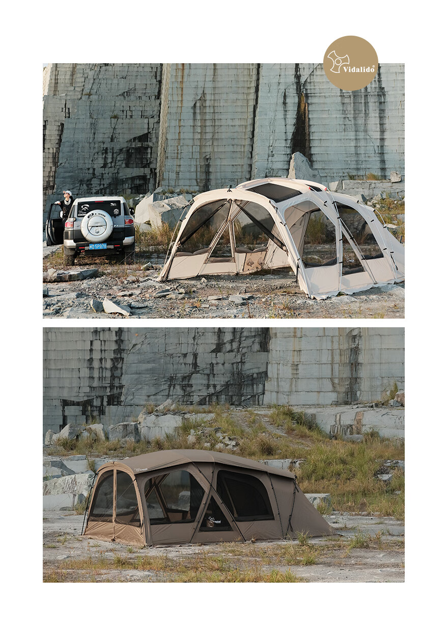 vidalido维达利多户外露营帐篷地平线隧道帐一室一厅遮光防雨防晒超大空间 地平线2.0+地席 橄榄棕