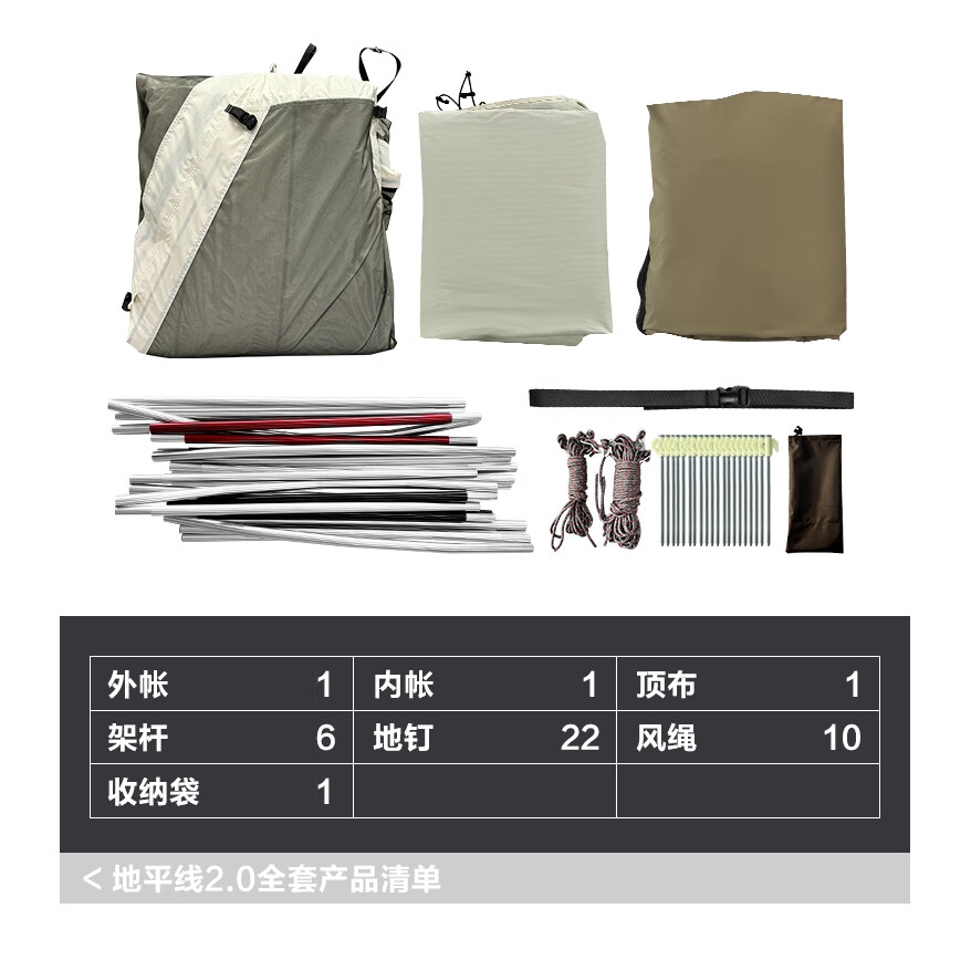 搭配地平线一起买的,这次露营没下雨,没测试出防水性,但是还是看得出隔绝了一点的水汽,尺寸是地平线的专属,还是比较不错的,值得购买,不然地平线内帐本来不规则,还要去定制。